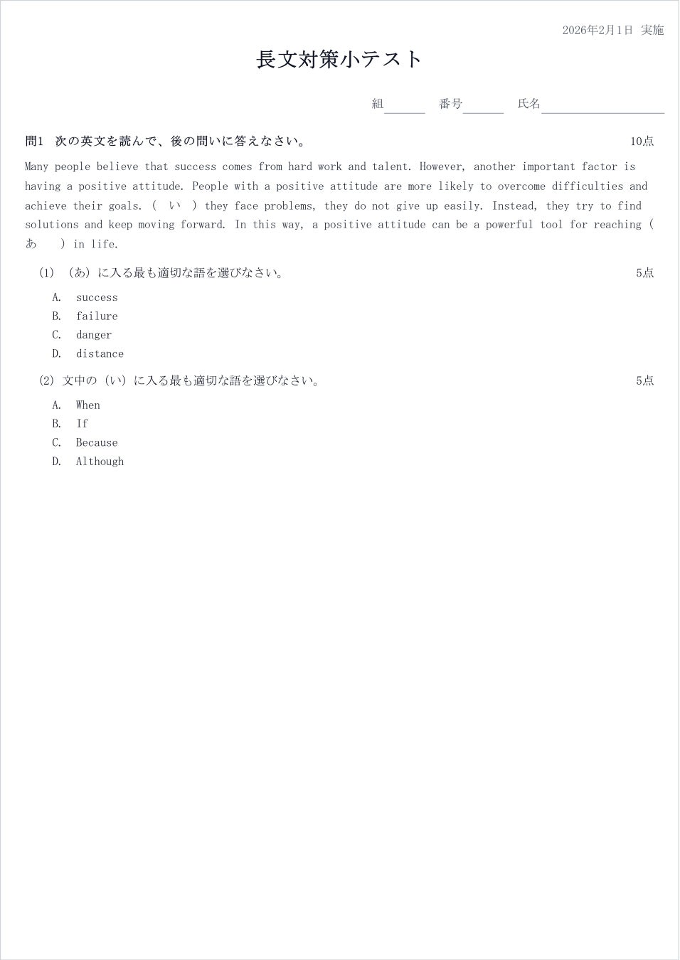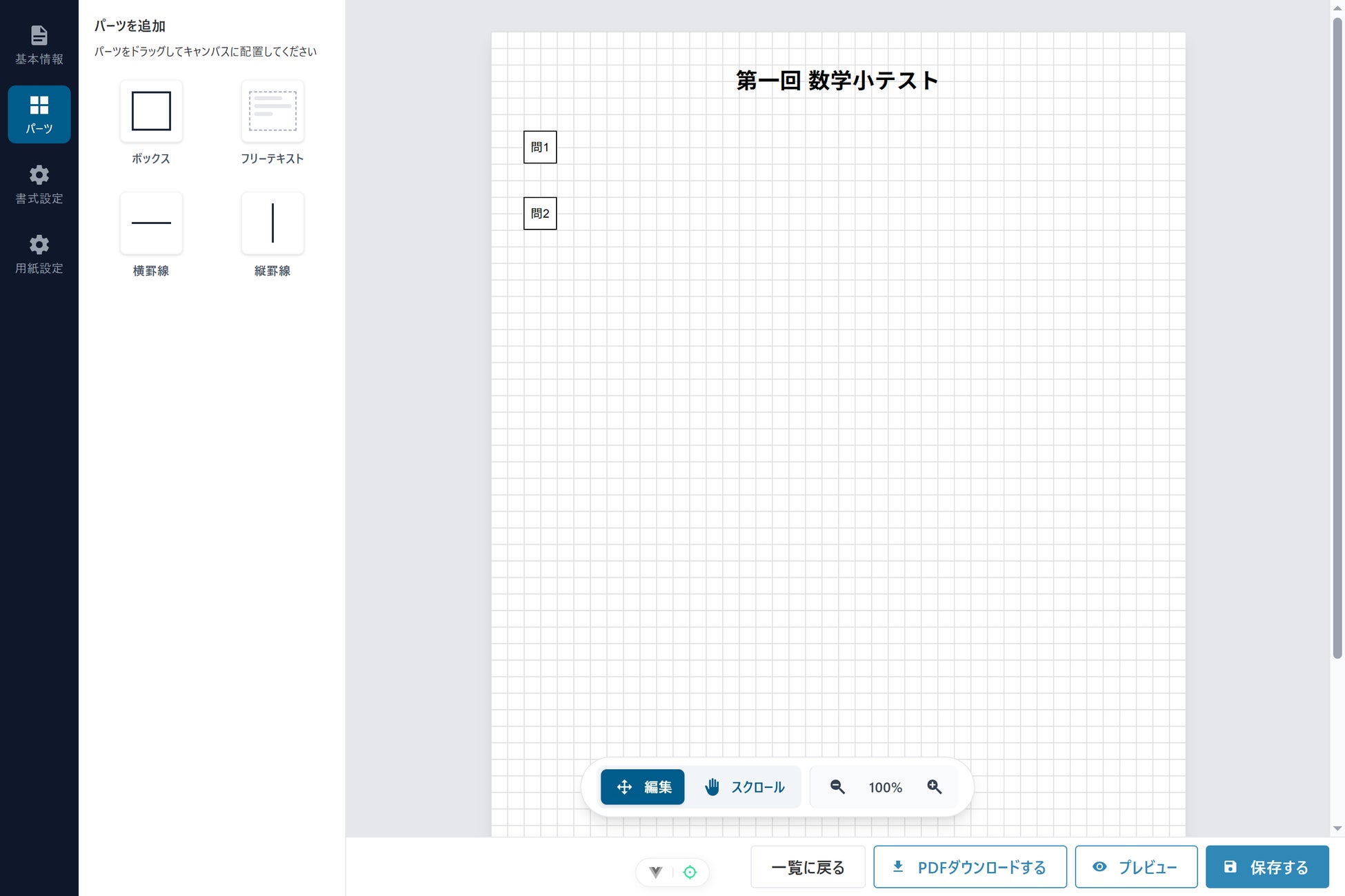 回答用紙の作成も、記述内容に合わせたサイズ変更や配置が自由に行えるため、Word等での煩雑なレイアウト作業から解放されます。
