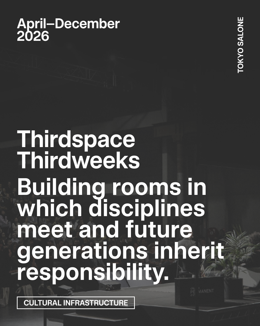 Tokyo Salone is a city-wide cultural infrastructure, and long-horizon for creative futures, rooted in Tokyo and extending outward through global networks.