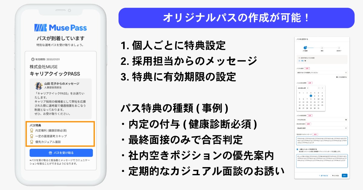 一斉送信ではなく、個別にパスを渡すことで候補者への誠意を伝えることが可能。