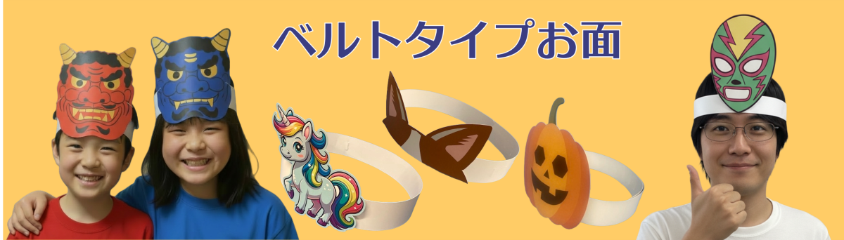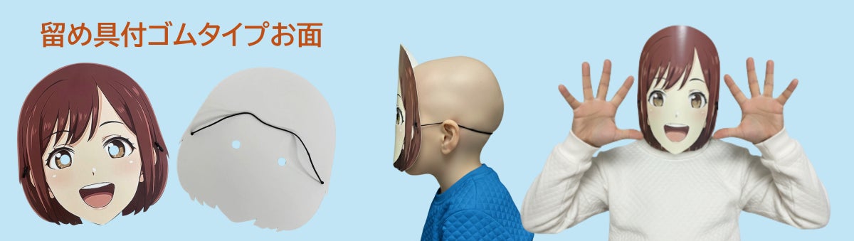 そしてこのたび、イベントや販売促進にぴったりな印刷商品の「紙お面」に、新たに「ベルトタイプ」と「留め具付ゴムタイプ」の2種類を追加いたしました。。