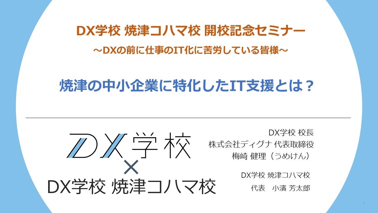 イベント名:「DX学校焼津コハマ校開校記念セミナー 焼津の中小企業に特化したIT支援とは?」