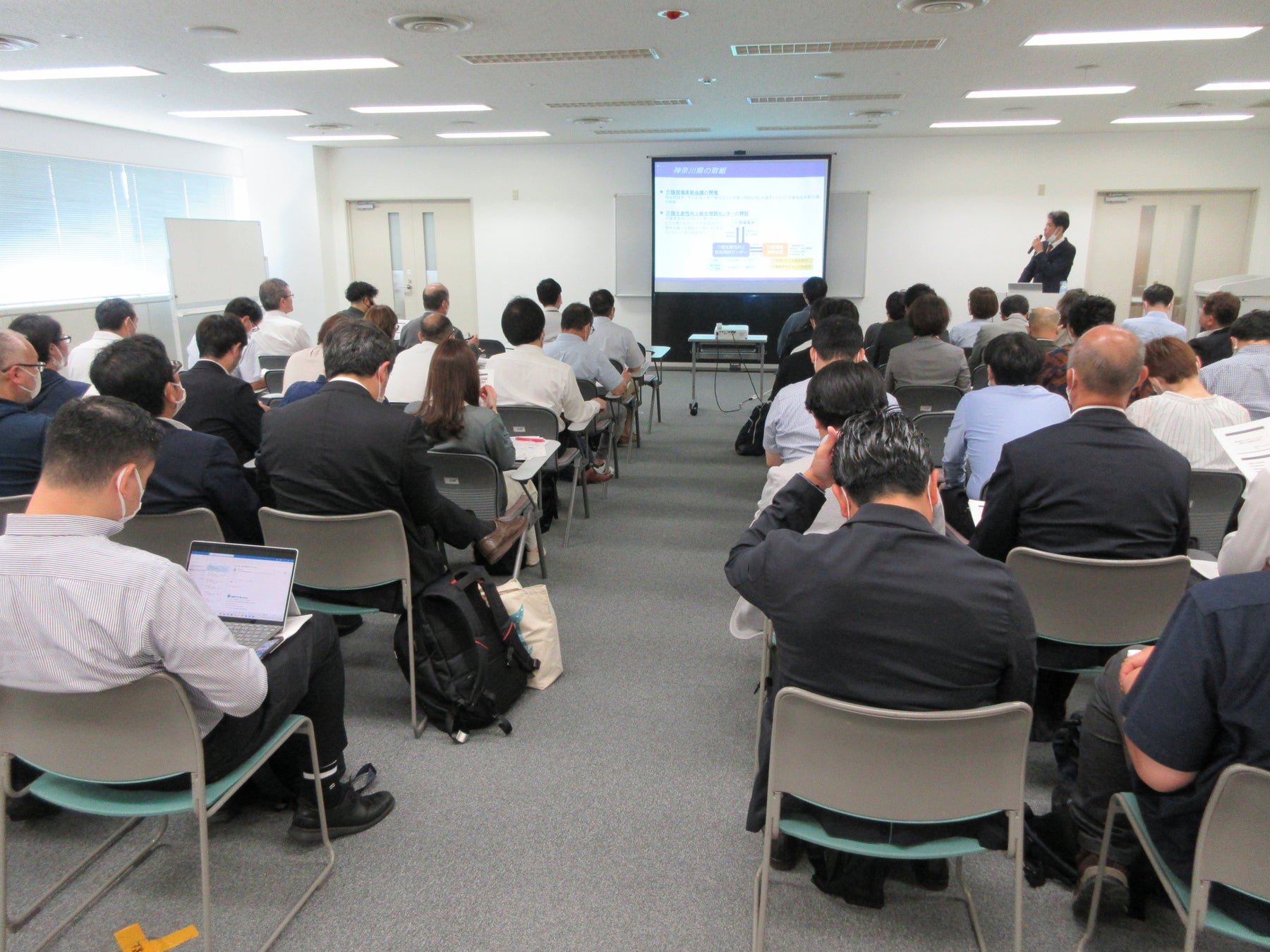 公益社団法人かながわ福祉サービス振興会は、平成30年度に介護・生活支援ロボットの開発メーカー及び販売代理店による開発や周知、販売における情報交換や意見交換、介護事業者側とのマッチングを目的とし「介護・生活支援ロボット普及推進協議会」を設立しております。今年度は介護ロボット・ICTメーカー約60社に加盟頂き、全国に活動の場を広げております。