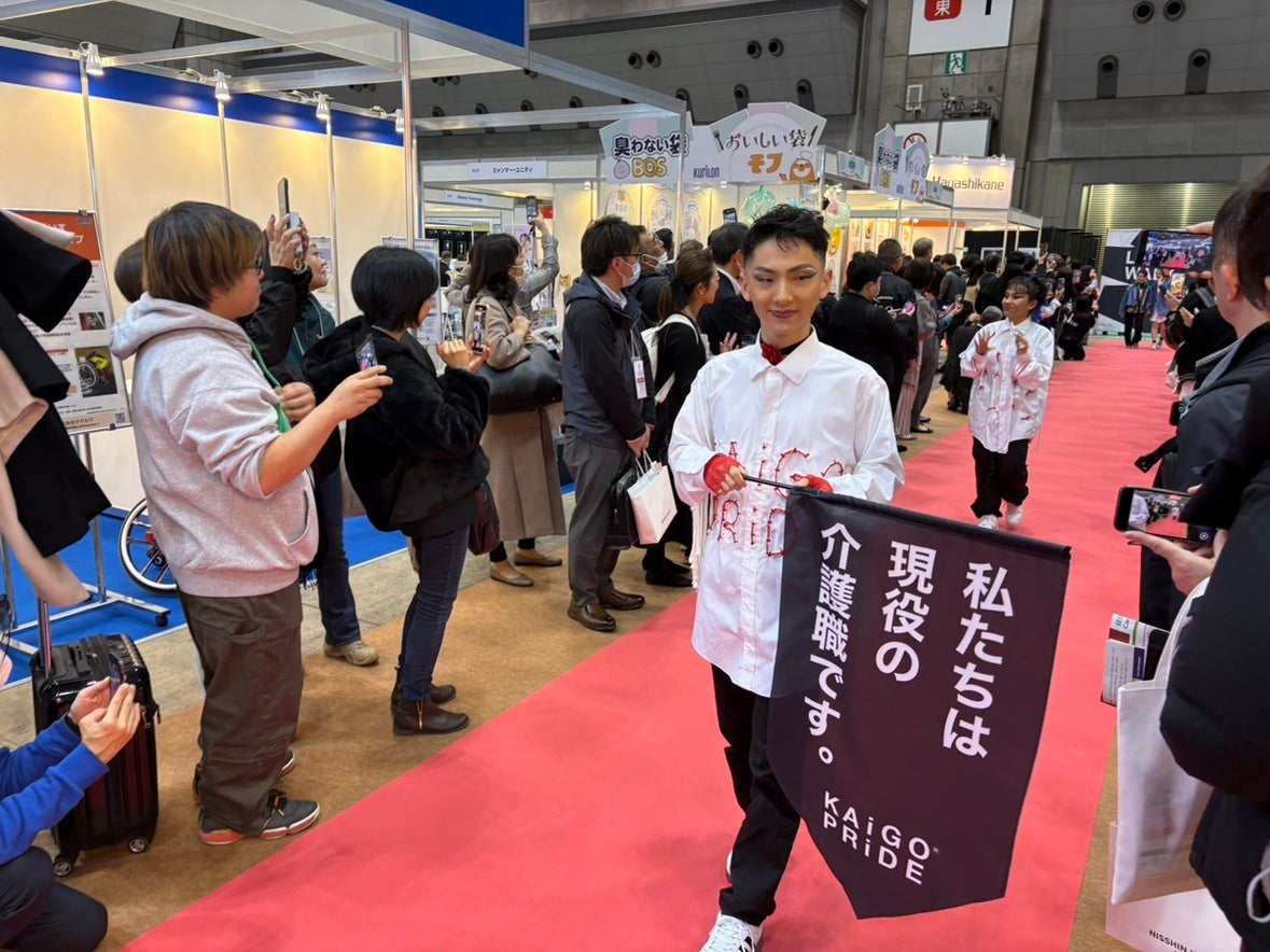 「Care Show Japan 2025」では、介護職とご利用者が共にレッドカーペットを歩く「LiNK WALK」が実施されました。本イベントは、「一人では歩けないけれど、二人なら歩ける」というメッセージを伝え、介護の可能性を社会に広めることを目的としています。