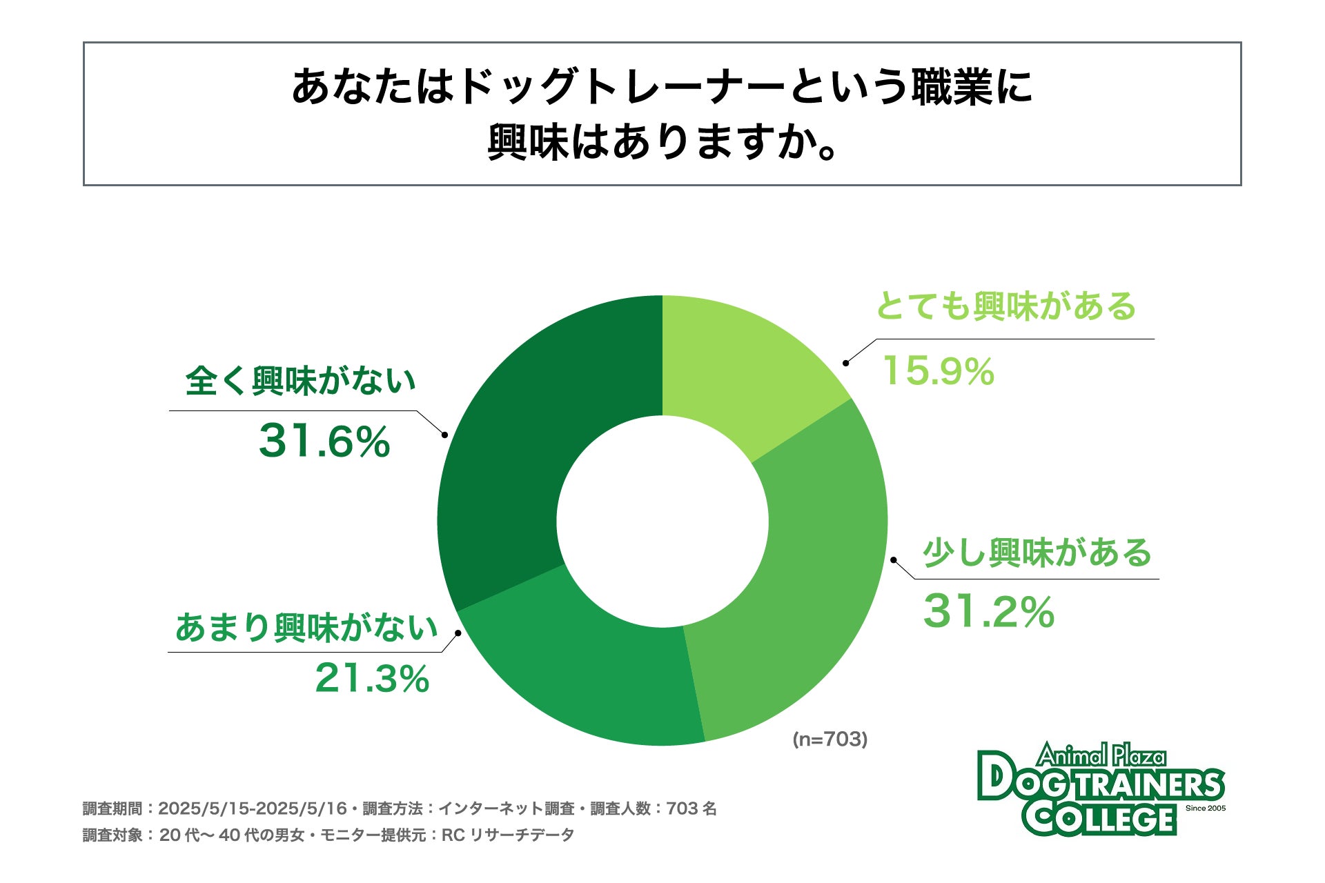 20代~40代の男女の4割強が、ドッグトレーナーという職業に興味がある