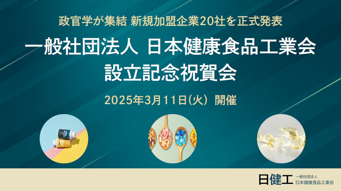 健康食品業界の健全な発展と消費者の信頼回復を目指し、健康食品のバリューチェーンを長年にわたり中心的な存在として支えてきた受託開発・製造企業が中心となり、2025年1月に「一般社団法人 日本健康食品工業会」を設立いたしました。これを記念し、2025年3月11日(火)18:00より、大手町サンケイプラザ(東京都千代田区)にて設立記念祝賀会を開催いたします。