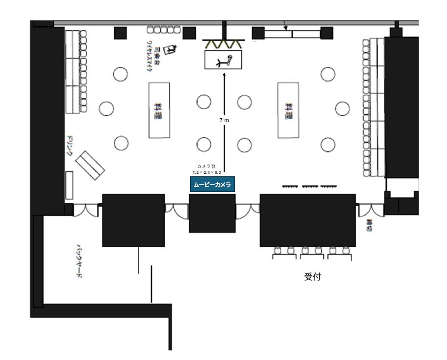 会場後方にムービーカメラを設置できるエリアを設け、音声ラインをご用意しています。(※ただし、キャノン端子のケーブルは各自でご用意ください。)