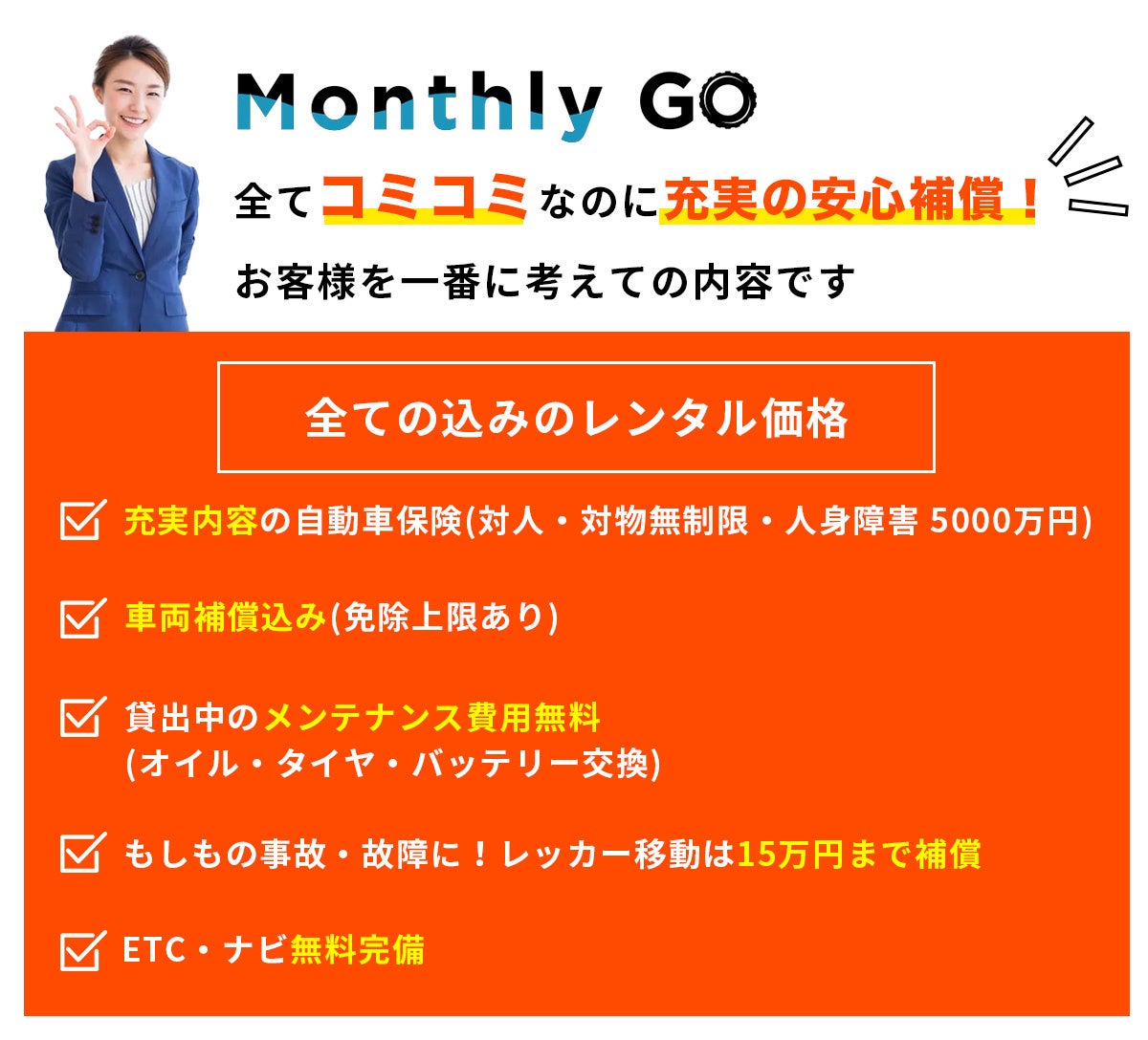 マンスリーゴーは、格安レンタカーサービスでありながら「安かろう悪かろう」を一切排除。