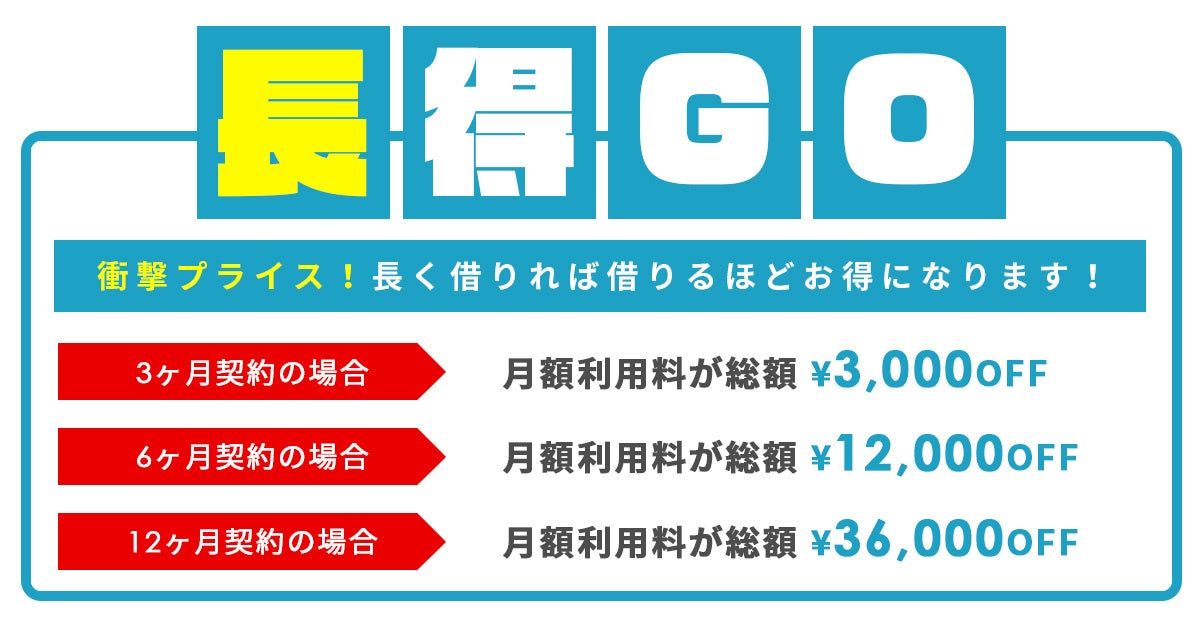 【マンスリーゴー特徴 ① 】長く借りるほどお得な「長期割プラン」もご用意