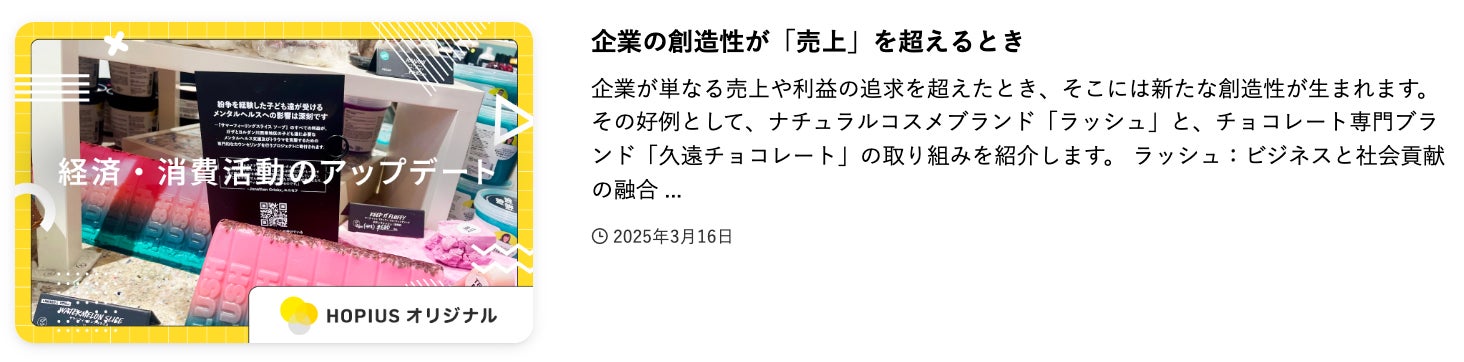 他社メディアの記事を、記事の概要とHOPIUSの「希望の解釈」を添えてコンパクトにお届けします。深く読み進めたい方は、他社メディアに飛び読むことができます。