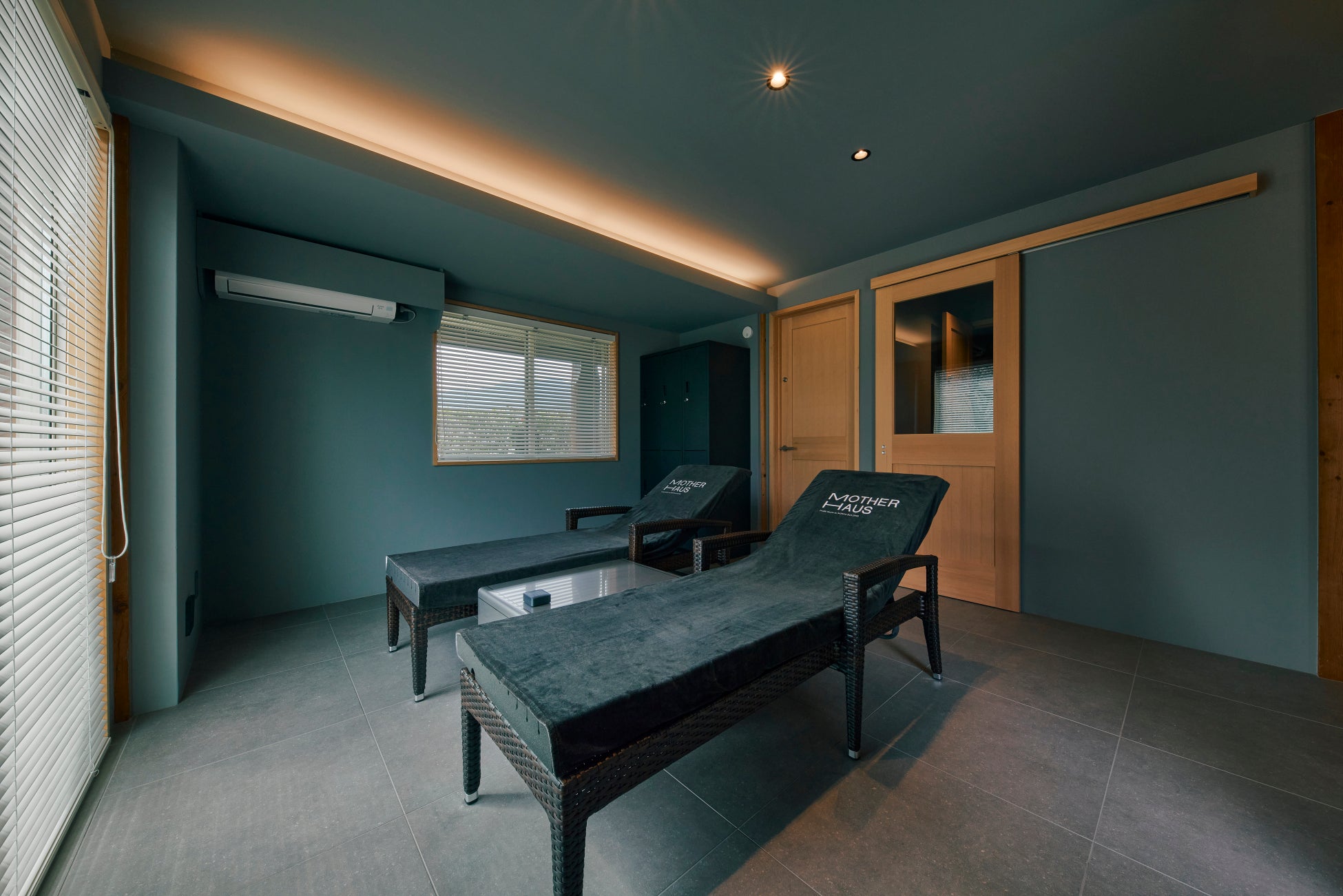内気浴エリアにはフルフラットになるベッドがあり、外気浴にも劣らない「ととのい」体験を提供します。