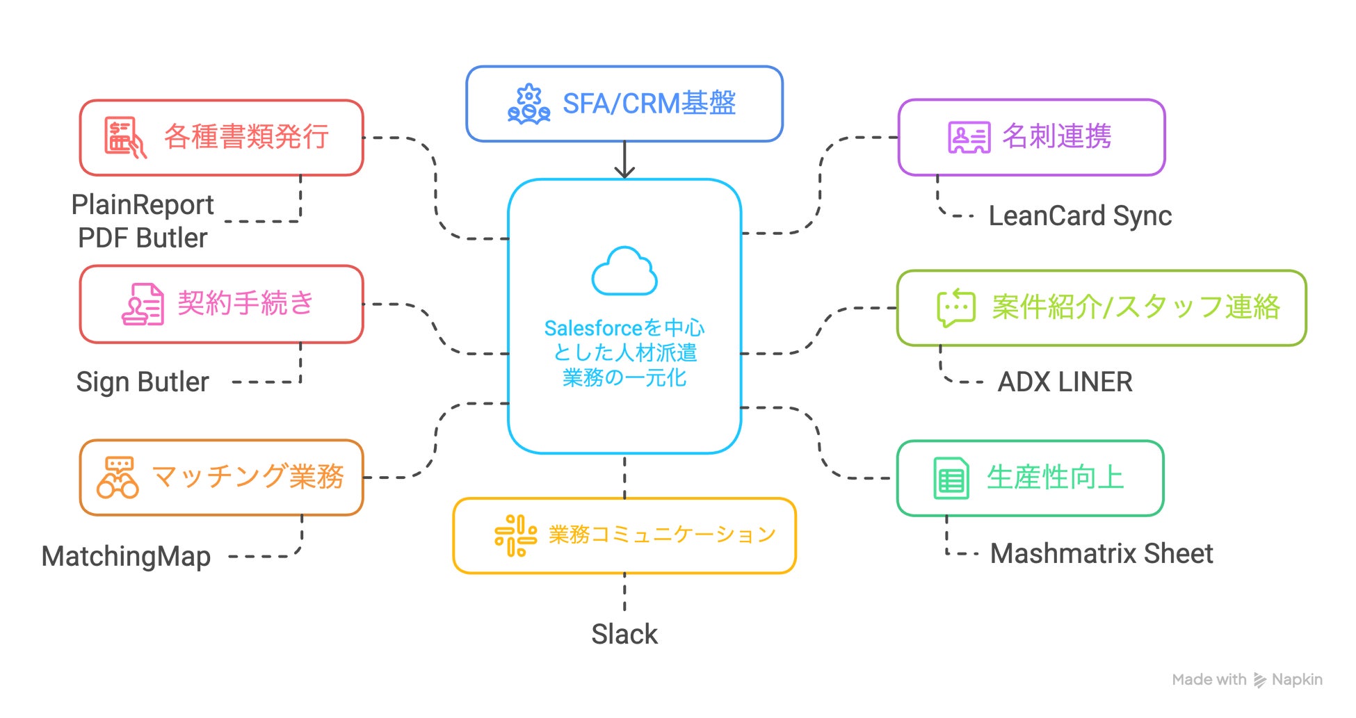 本ソリューションは、人材派遣業に特化したSalesforceの導入・活用支援を通じて、業務効率化、生産性向上、そして企業全体の持続的成長を強力に後押しします。