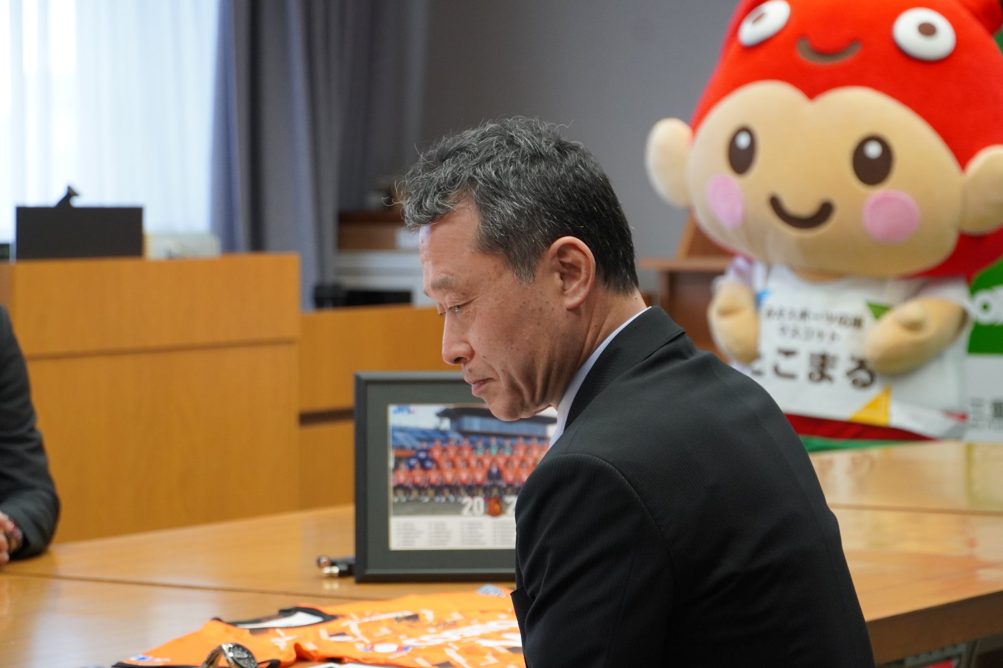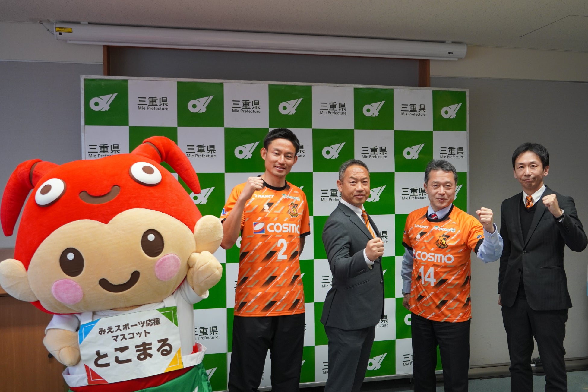 2025シーズンの補強や、今月開幕を迎えた日本フットボールリーグ(JFL)のここまでの戦いなどについて一見知事にご報告をさせていただき、今季キャプテンを務める谷奥健四郎(三重県志摩市出身)からも「三重県にJリーグチームを作ることが目標」と改めて決意を語りました。
