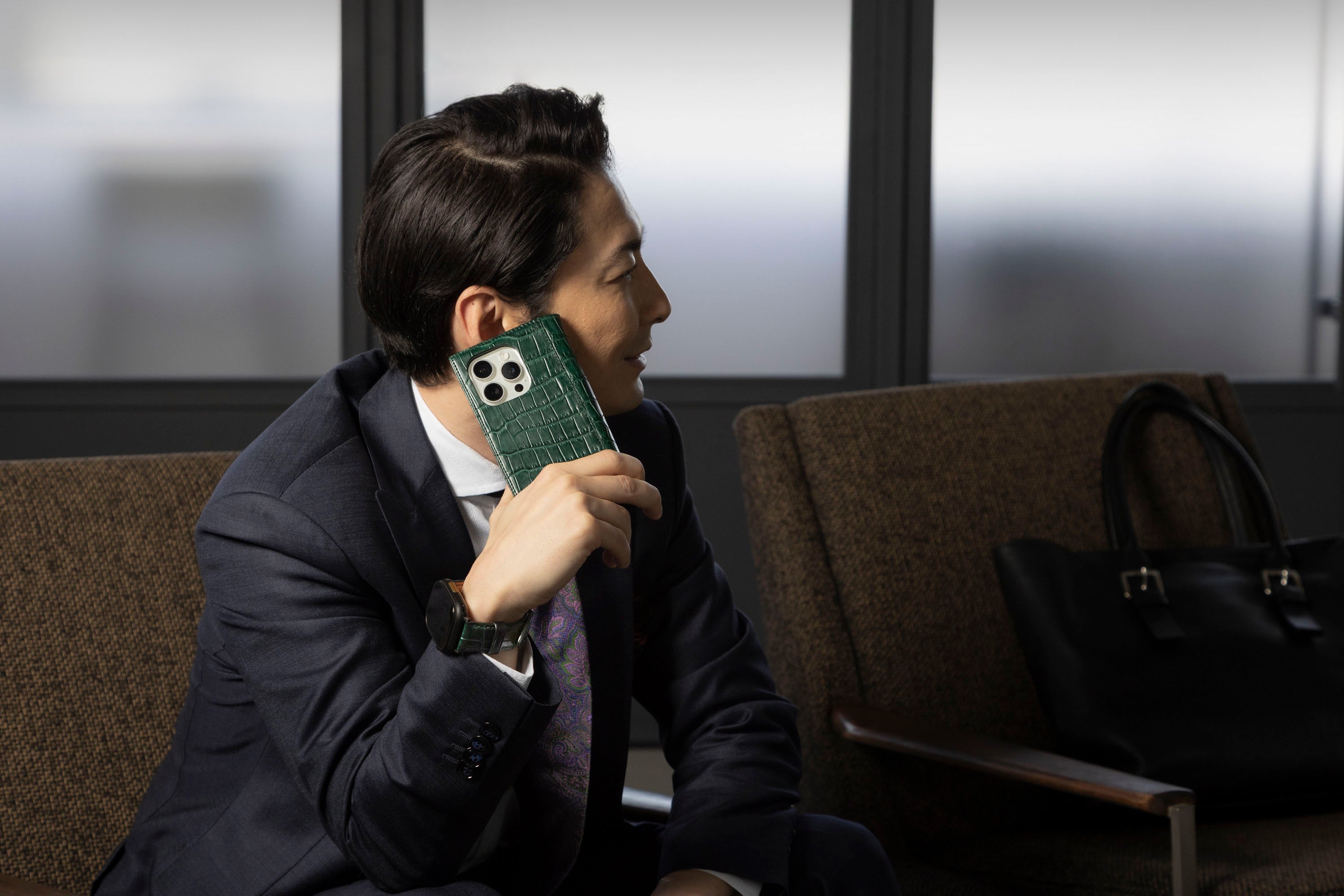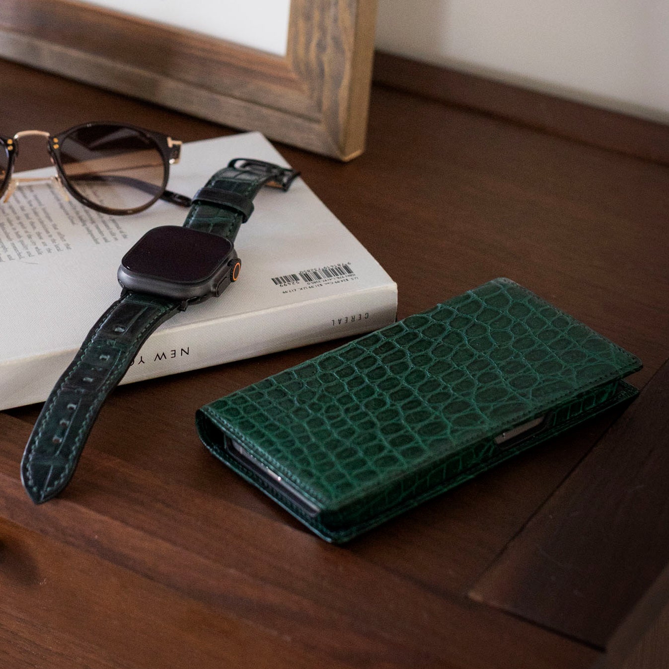 厳選したスモールクロコダイルレザーを国内の職人が丁寧に仕上げたiPhone用ケース、Apple watch用バンド