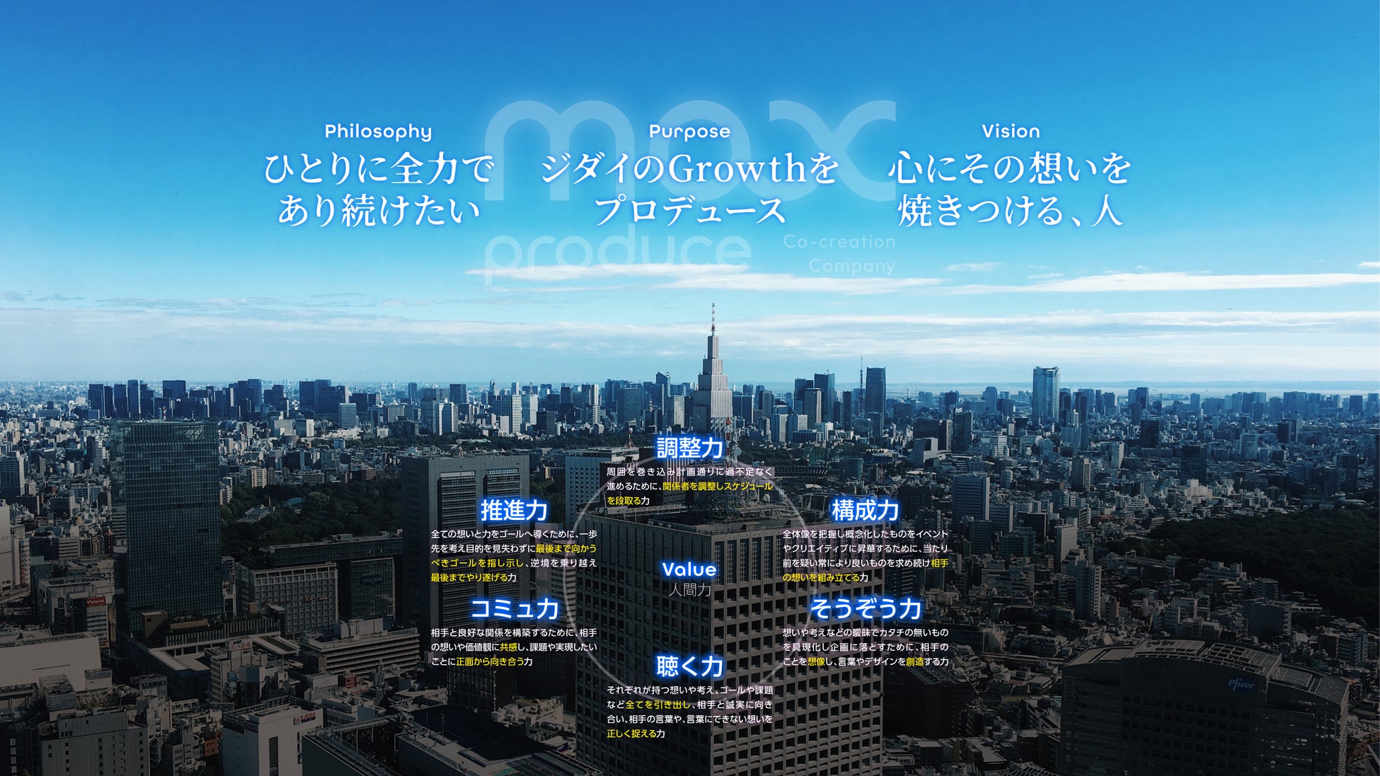 社員総会や表彰式などインナーイベントを得意とするマックスプロデュースは「ジダイのGrowthをプロデュース」とのパーパスを掲げてSHINKA(進化&深化)・成長します!