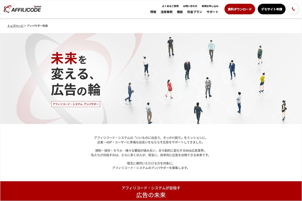 アフィリコード・システムの理念に賛同いただける方を増やすため、アンバサダー制度を新設しました。