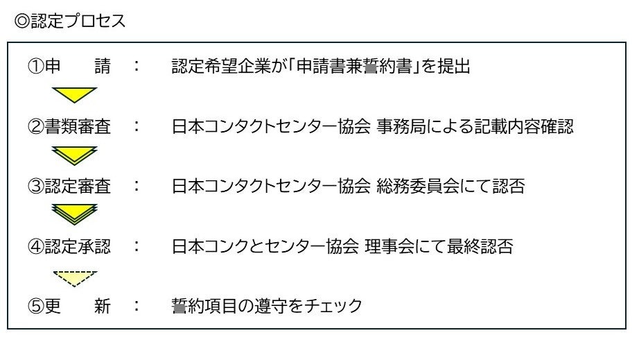 認定には次の9項目を誓約の上、審査を経て理事会で承認します。制度設立時は、日本コンタクトセンター協会(CCAJ)会員を対象とするため、認定・更新料は無料です。