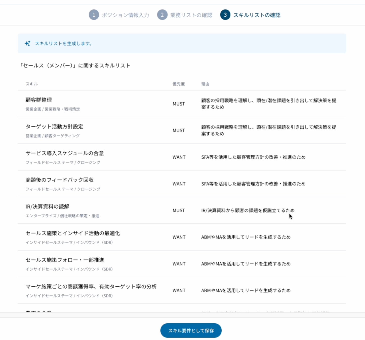専門知識がなくても適切なスキル要件候補を短時間で生成可能