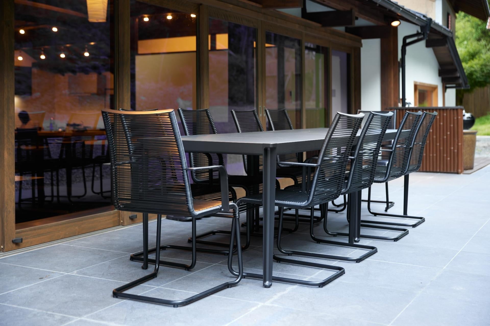 モダンな家具と古くからの木の部材を組み合わせ活かした空間設計は、洗練されつつも歴史の重厚感を感じさせます。大開口の窓の外には緑豊かな山々の景色が広がり、四季折々の風景が室内からも楽しめるように設計されています。室内外の空間をつなぎながら、グループや家族のそれぞれが自分らしく過ごせる工夫が随所に施されています。
