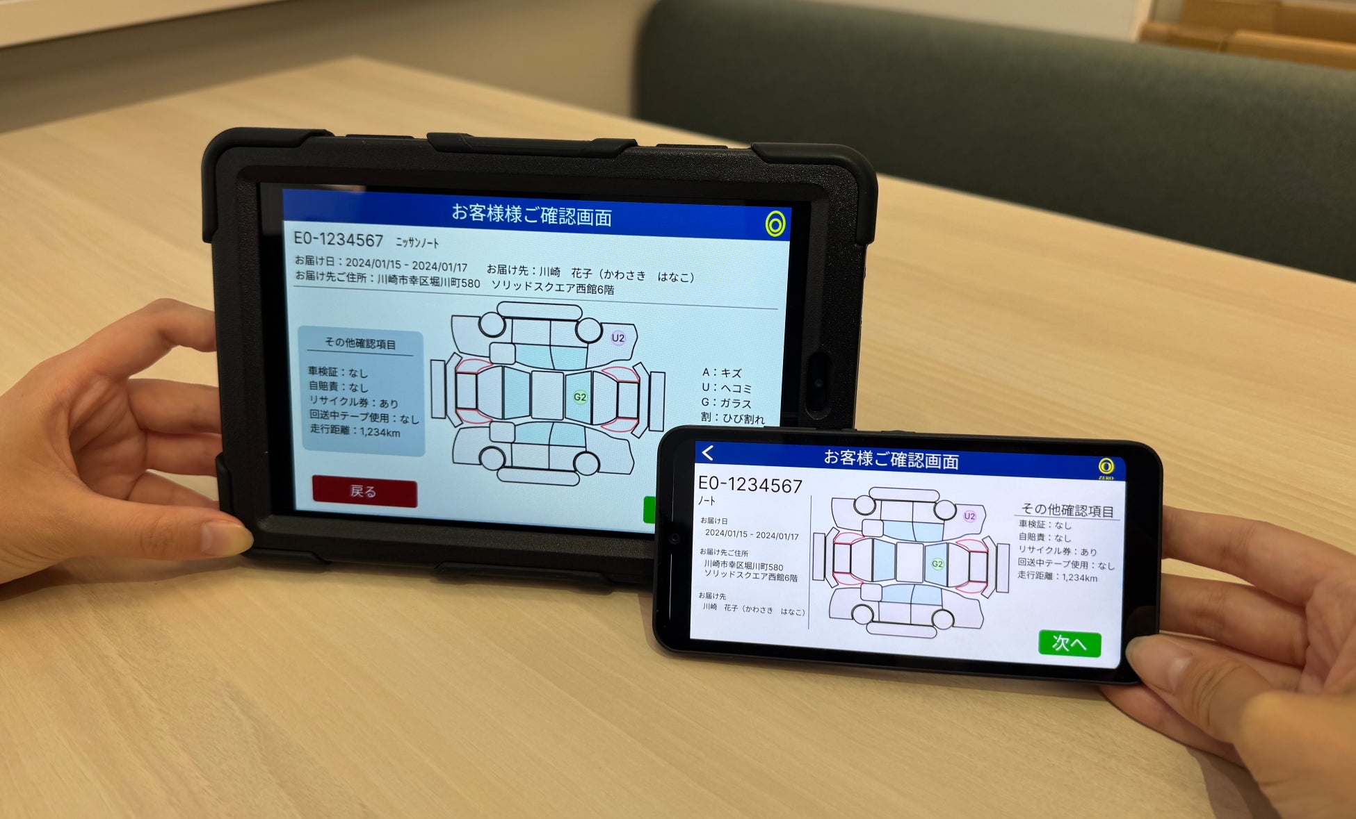 2023年には「mola」の導入が開始され、その効果は非常に大きなものとなりました。ドライバーおよび事務担当者一人あたりの作業時間は、従来の合計50分から15分へと大幅に削減されました。また現場での情報を取り扱う事務担当者の年間作業時間も、合計1290時間から341時間への削減を目指しています。業務のデジタル化により、車両の状態を写真や画像で記録できるようになったことで、納車時の状況説明がこれまで以上に正確かつスムーズに行えるようになりました。