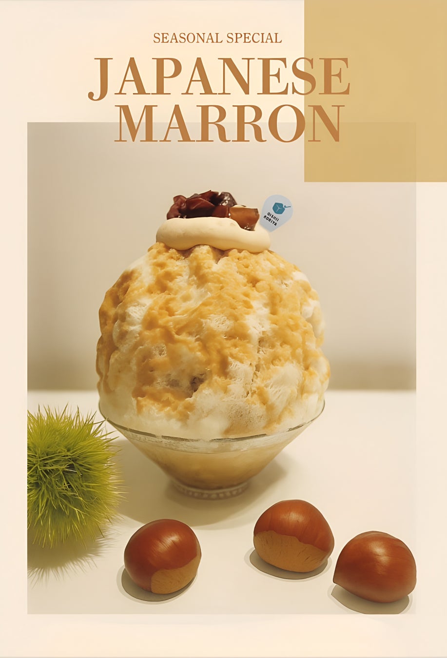 九州製氷株式会社(本社:福岡市中央区、代表取締役: 藤林 秀基)が運営する、かき氷専門店「おいしい氷屋 天神南店」では、2025年11月13日(木)より、秋の味覚「国産和栗」の風味を贅沢に閉じ込めた限定メニュー、『国産和栗の秋日和〜香ばしほうじ茶とまろやか黒糖〜』を数量・期間限定で発売いたします。