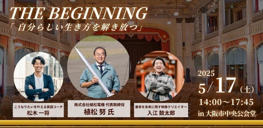 合同会社Lead Core(本社:大阪府大阪市北区、代表:細見俊介)は、株式会社植松電機代表取締役 植松努氏 をお招きし、“自分の人生”を生きる一歩を踏み出すためのイベントを5月17日(土)に大阪市中央公会堂で開催します。