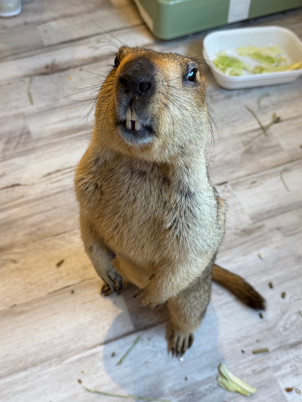 店内では、マーモットが大好きなキャベツやにんじんなどの生野菜のおやつやり体験をお楽しみいただけます。1頭ずつ食事管理を行っていますため、状況によっては実施できない場合があります。