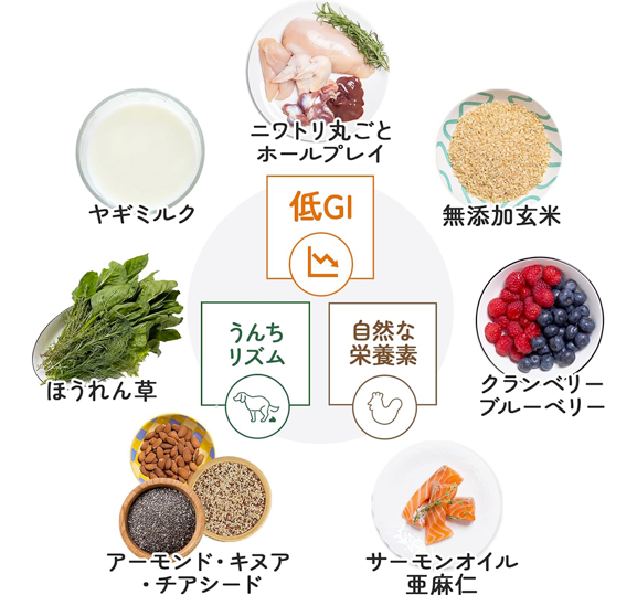 特徴:低GI設計、血糖値コントロール、うんちリズムサポート、味覚疲労対策
