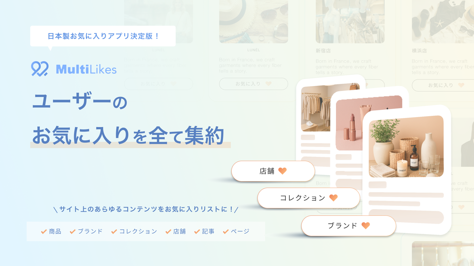 Bouquet株式会社(本社:東京都目黒区)は、Shopifyサイトにて「ブランドお気に入り」「記事お気に入り」を実現可能にするShopifyアプリ「MultiLikes」を正式リリースしました。
