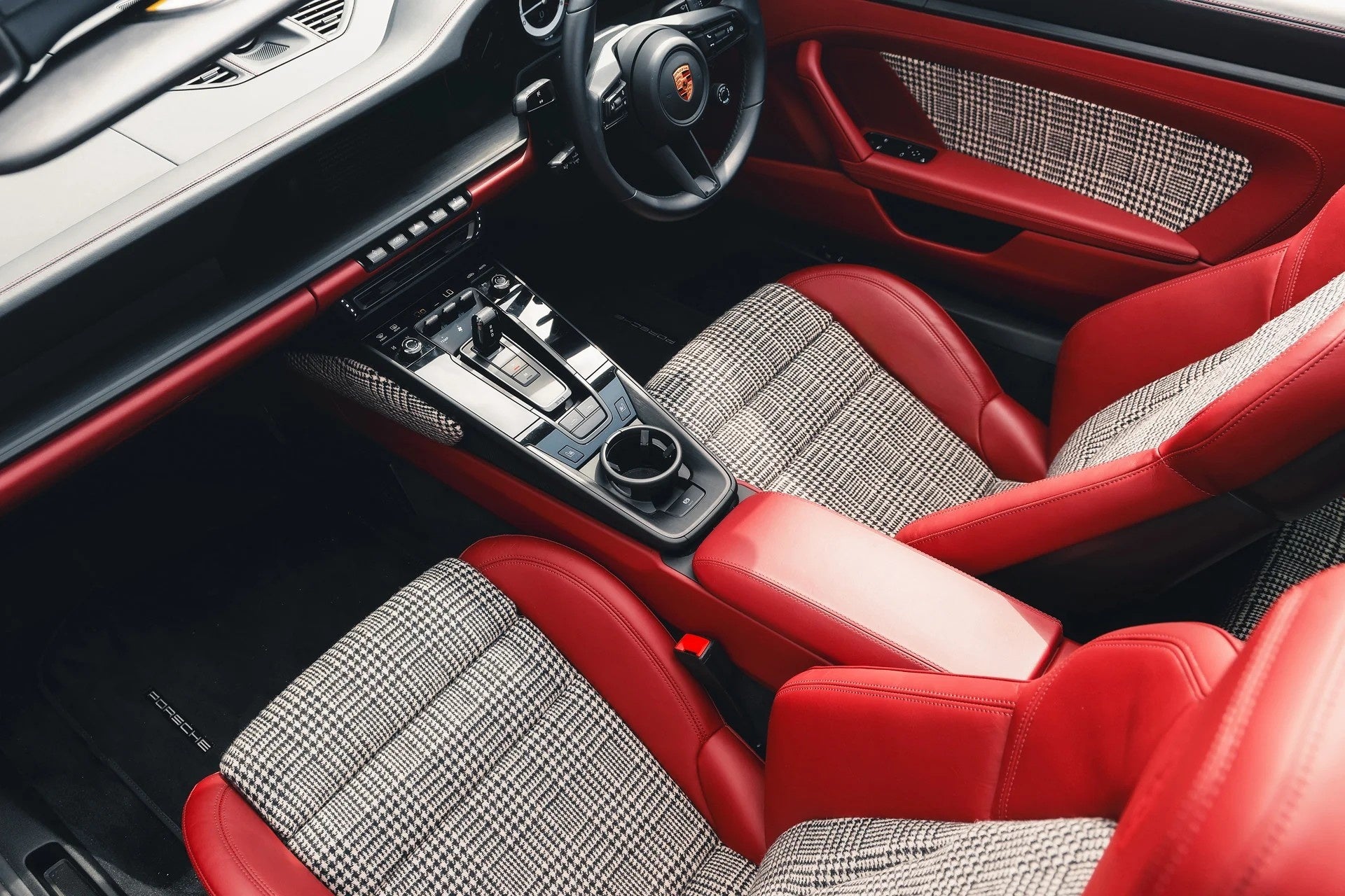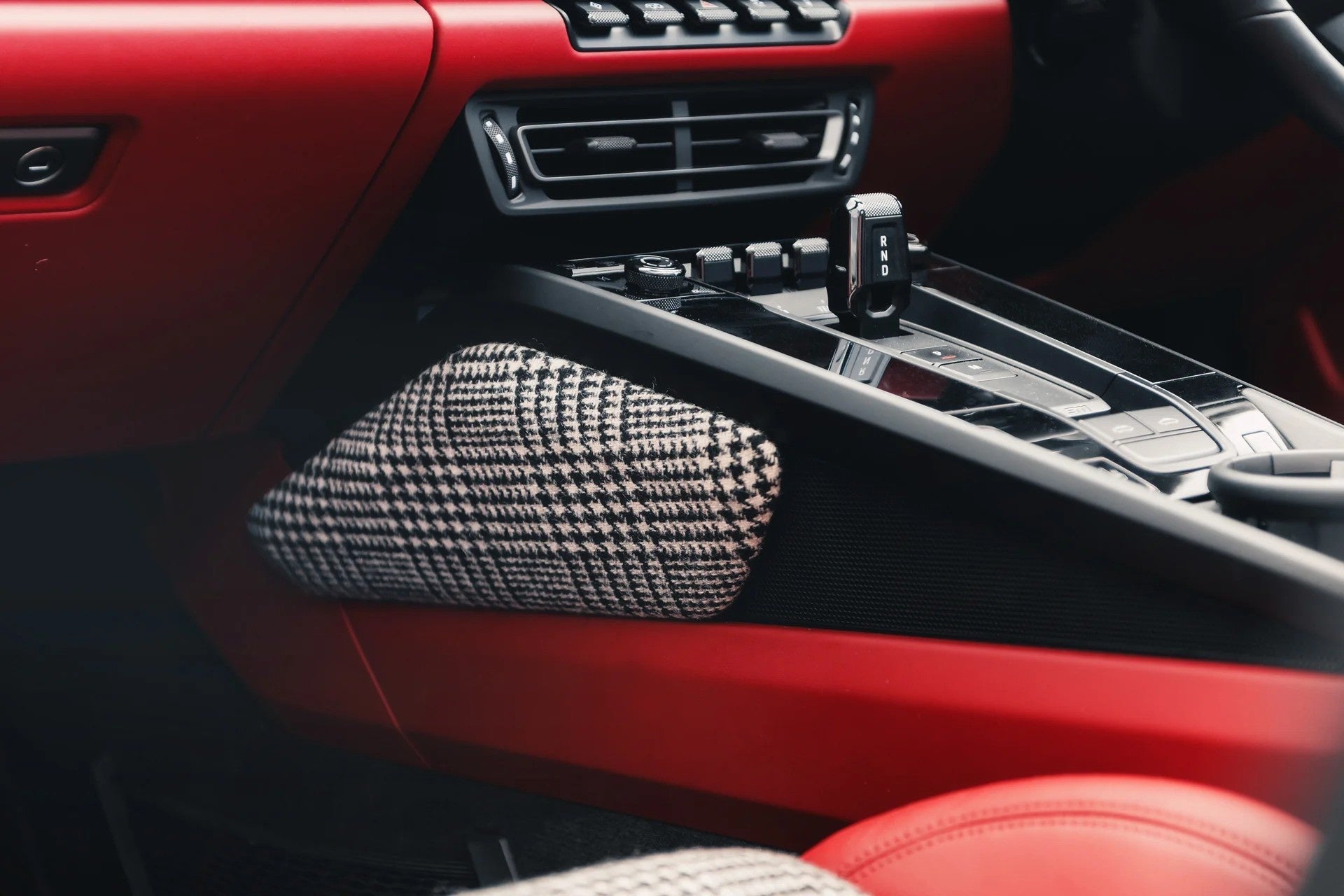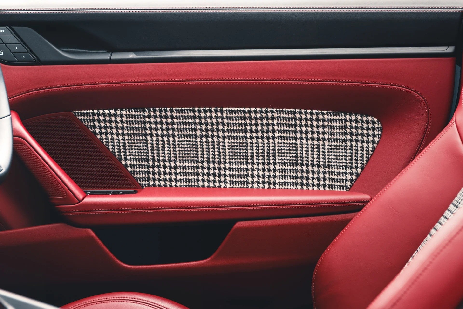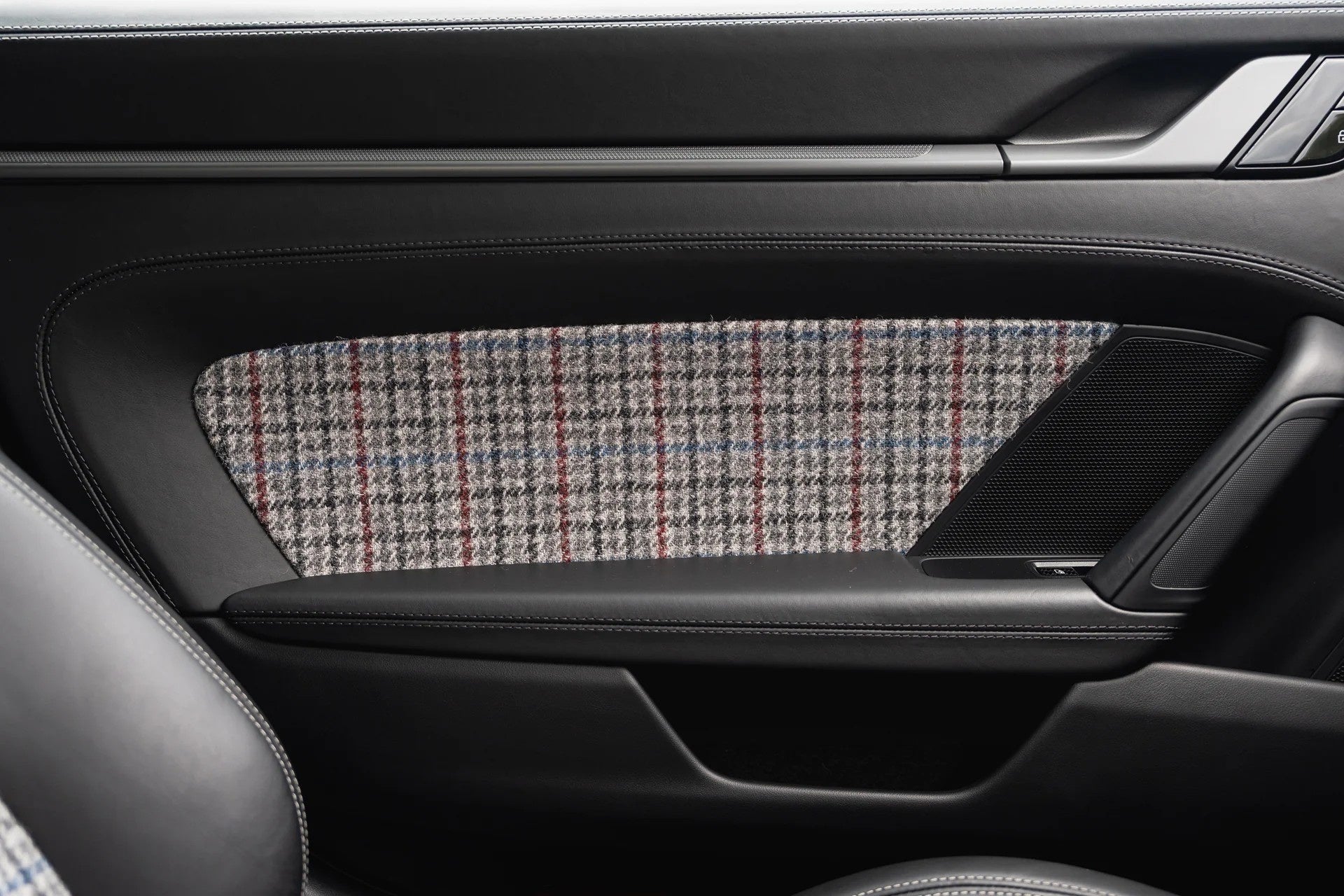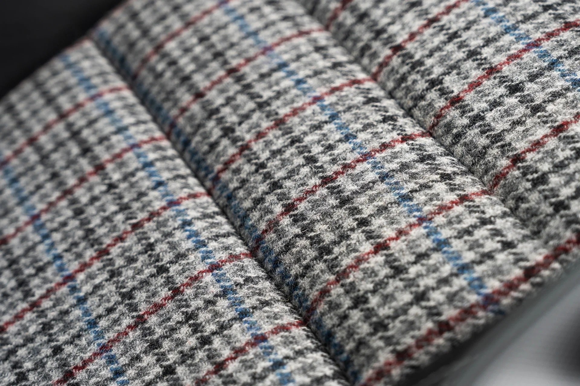 上質なヘリテージツイードや、クラシックな千鳥格子(ハウンドトゥース)といった、永く愛され続ける布地を、現代的な車内空間に美しく融合させました。