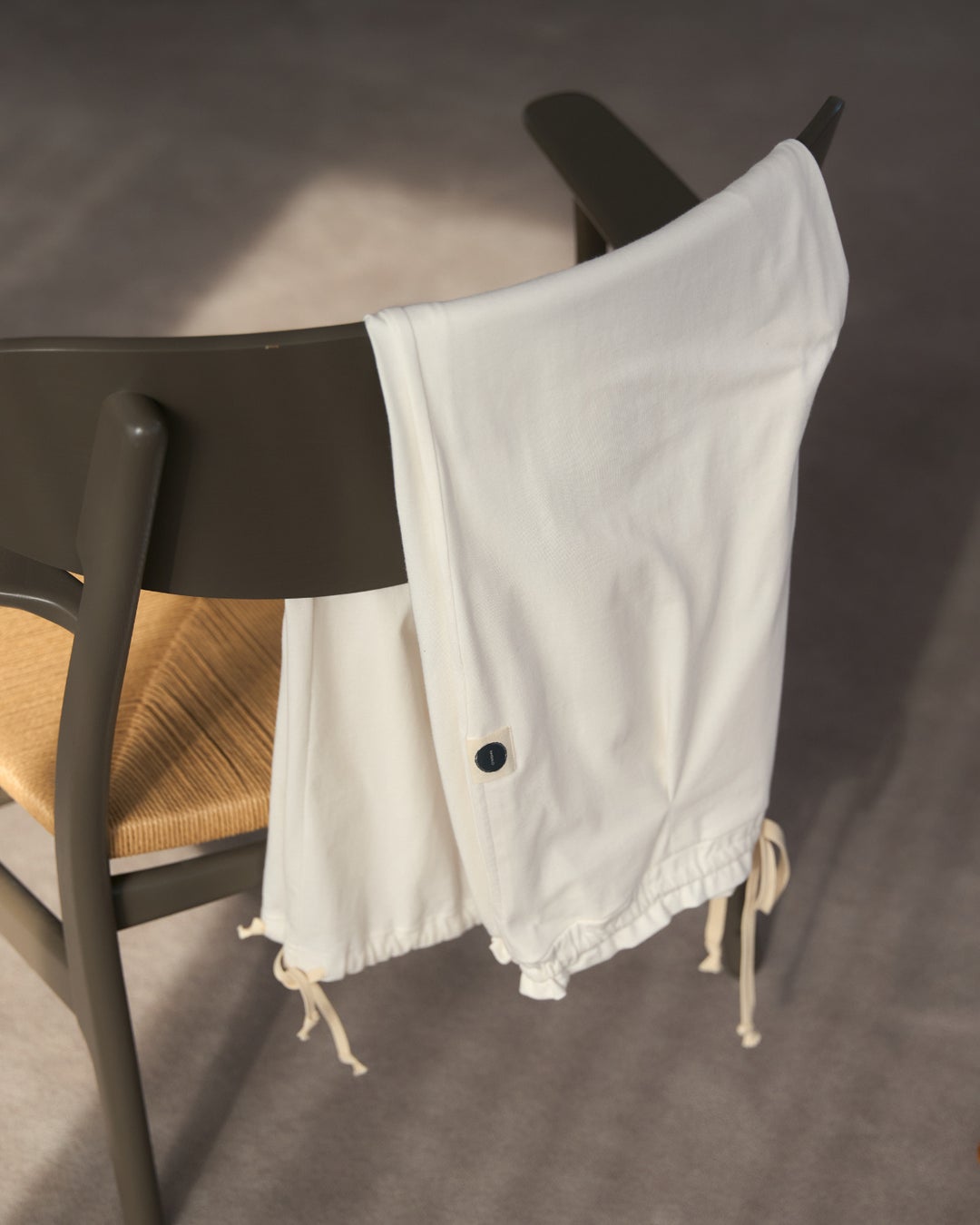 ENSULOでは、環境負荷を抑えつつ、肌にも心地よい素材を厳選し、シンプルで洗練されたデザインを追求しています。ユニセックスなシルエットは、トレーニング後のリトリートウェアとしてはもちろん、日常のあらゆるシーンに自然と溶け込みます。ボタンや芯地、ステッチに至るまで生分解可能な付属を採用し、ウエスト部分にはゴムを使わず、土へ還る天然素材の紐を使用。細部に宿るこだわりが、真のサステナブルなものづくりを実現しています。