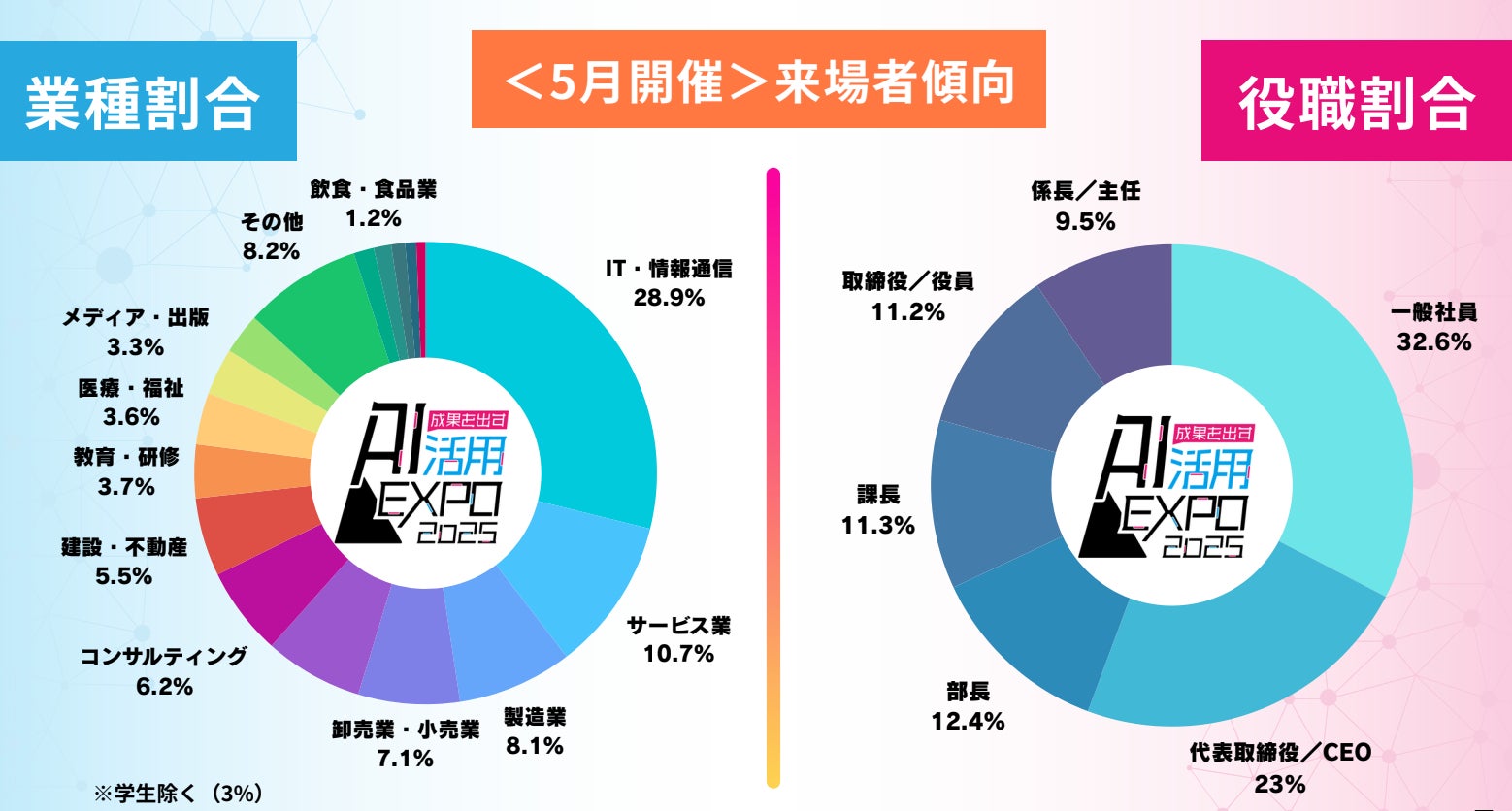 AI活用EXPOは「AIが話題になっているけれど、業務や生活にどう活かせばいいかわからない」「ツールがたくさんあって、何を使えばいいかわからない」そんな方のための展示会です。