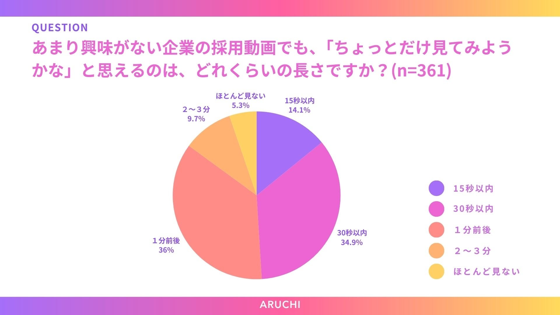そこで、「あまり興味がない企業の採用動画でも、少し見てみようかな」と思えるのは、どれくらいの長さか?を尋ねました。