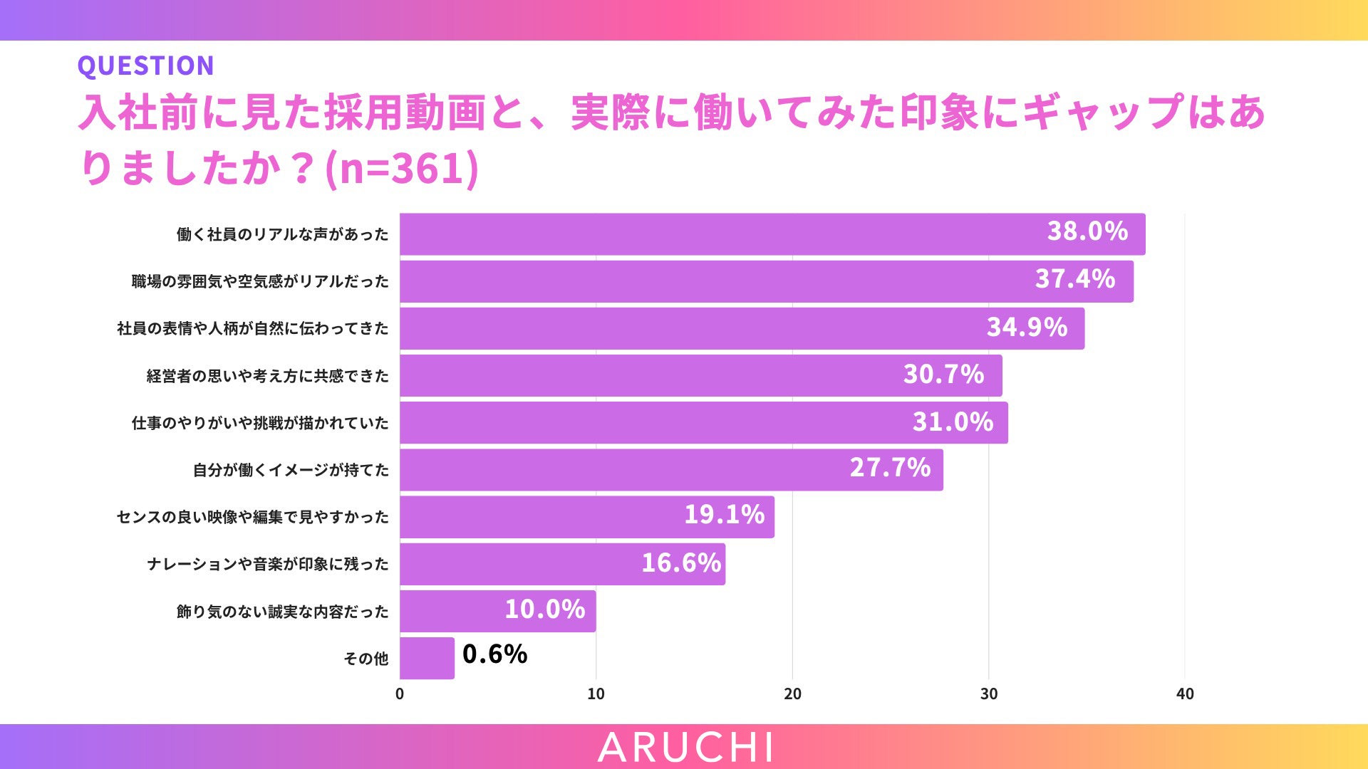 では、実際に採用動画を見て入社した人たちは、その動画の内容と現実の職場にどれほどの差を感じていたのでしょうか。