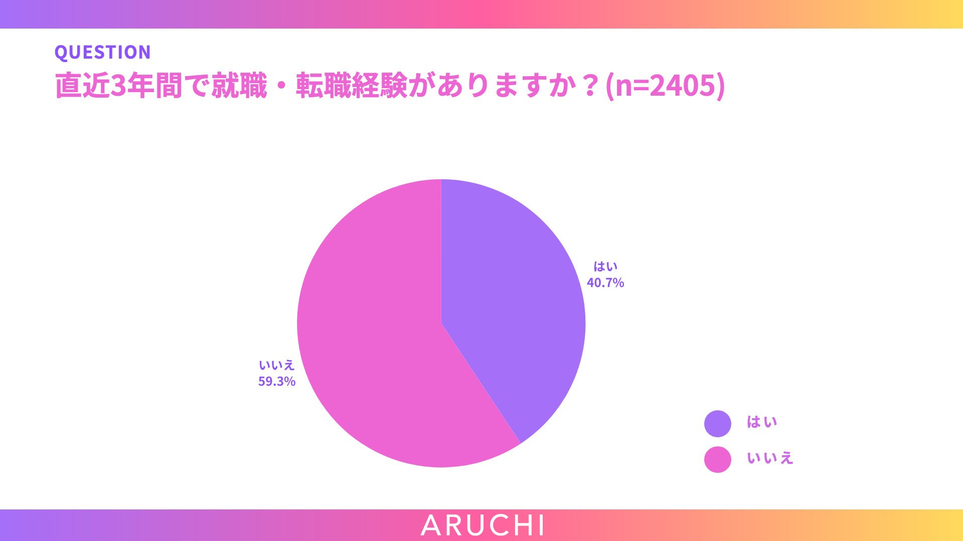 「直近3年以内に就職・転職を経験した」と回答した人は40.7%(978名)にのぼりました。