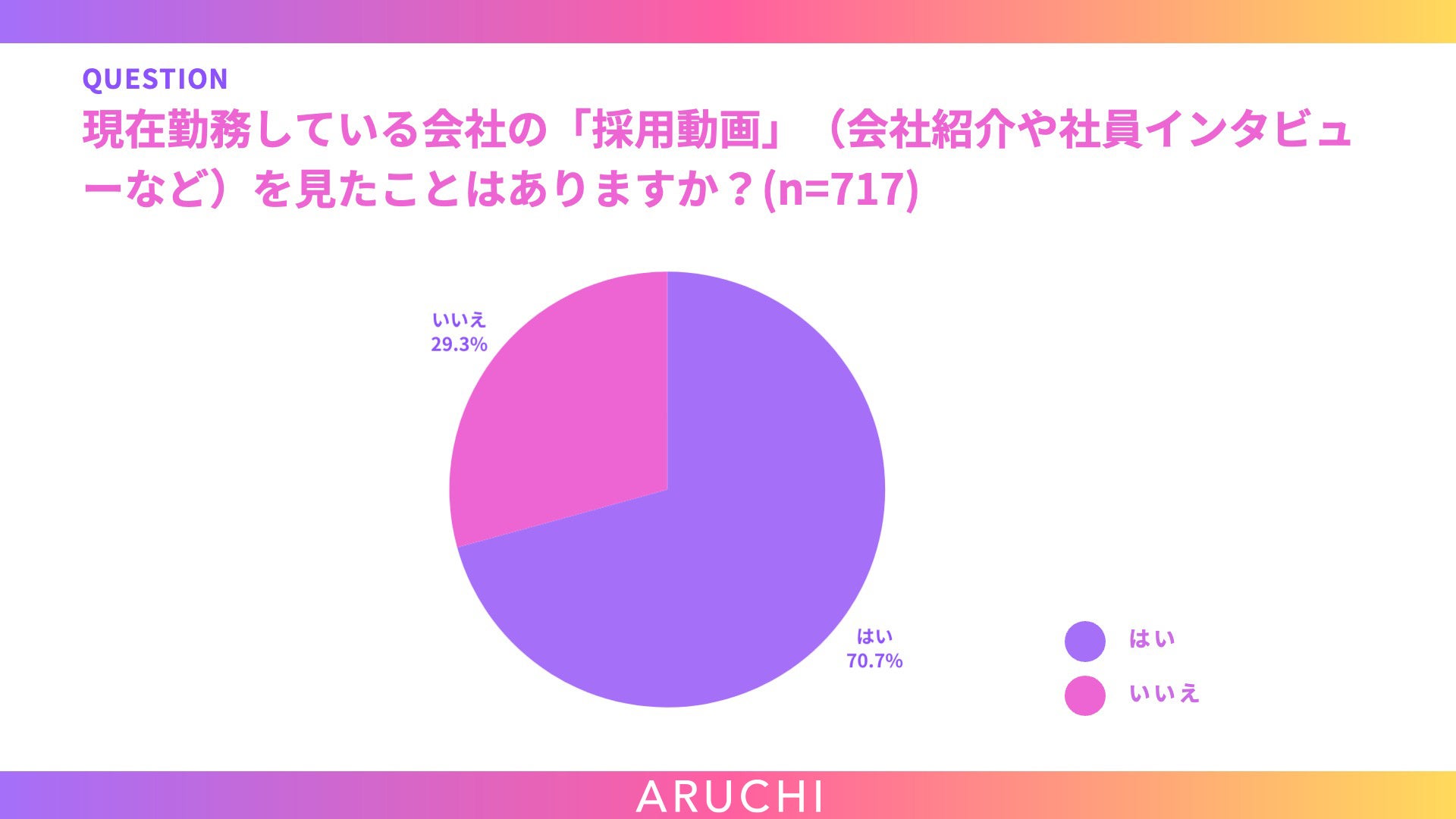 現在の勤務先の採用動画を見たことがあると答えた人が507名で70.7%に達しました。