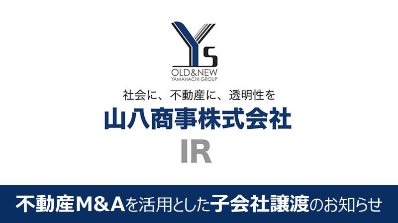 山八商事株式会社(本社:愛知県蒲郡市、代表取締役:鈴木俊介、以下「当社」)は、連結子会社である合同会社ワイズワン浜松浜北の持分(出資金)を、不動産M&Aとして第三者に譲渡する契約を3月31日に契約締結し、4月11日に譲渡完了致しましたのでお知らせいたします。