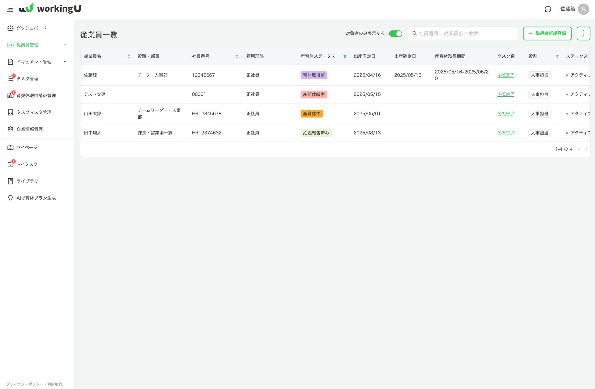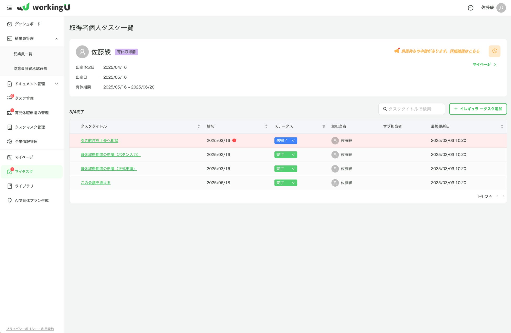 ・育休関連業務のタスク管理機能