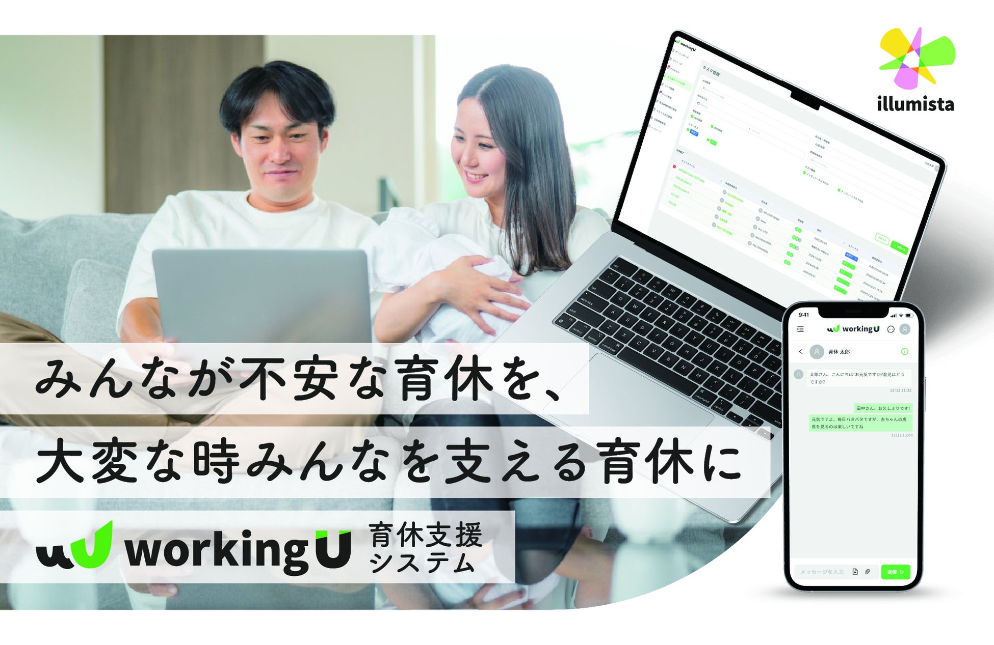 illumista株式会社(本社:東京都世田谷区、代表取締役CEO:富樫 憲之、以下「当社」)は、企業の人事労務担当者の負担軽減と従業員の育休不安解消を同時に実現する、法人向け育休支援システム「workingU(ワーキングユー)」を2025年5月7日よりα版の提供を開始したことをお知らせいたします。また、ローンチキャンペーンとして、先着10社限定の特別料金プランをご用意しております。
