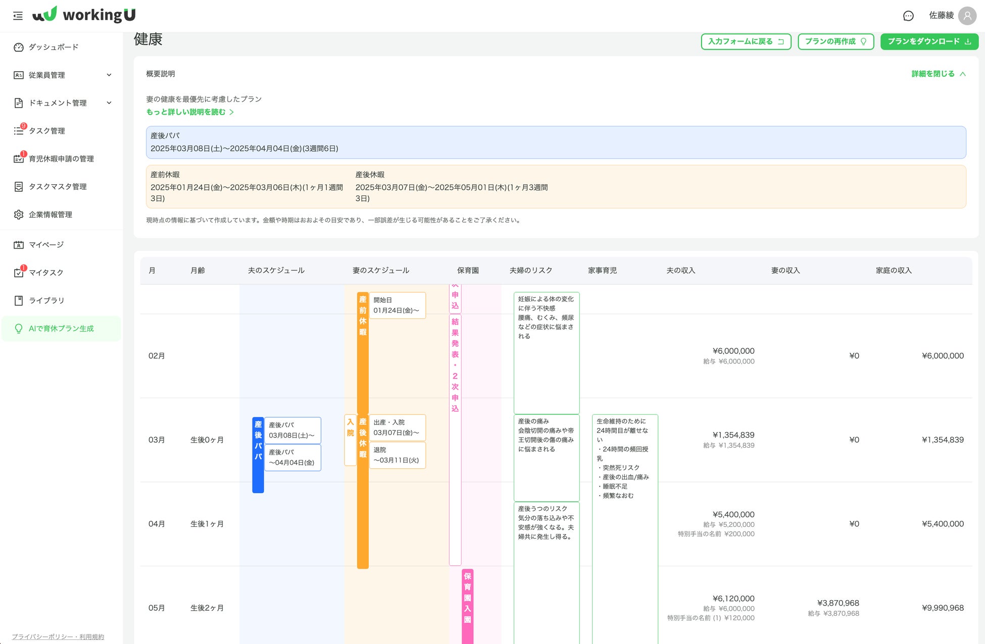 ・従業員夫婦の状況に合わせた複数の育休プランをAIが生成