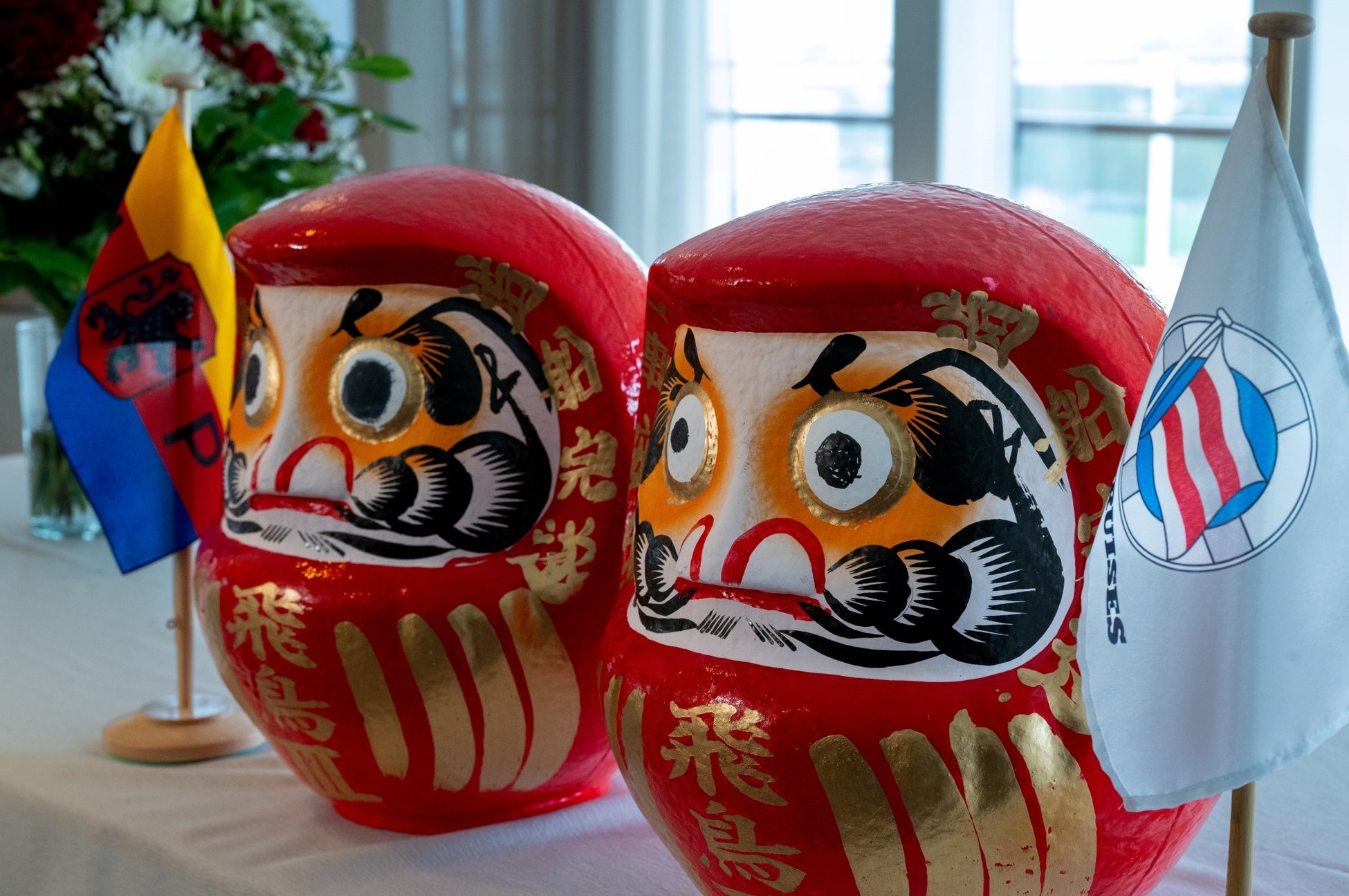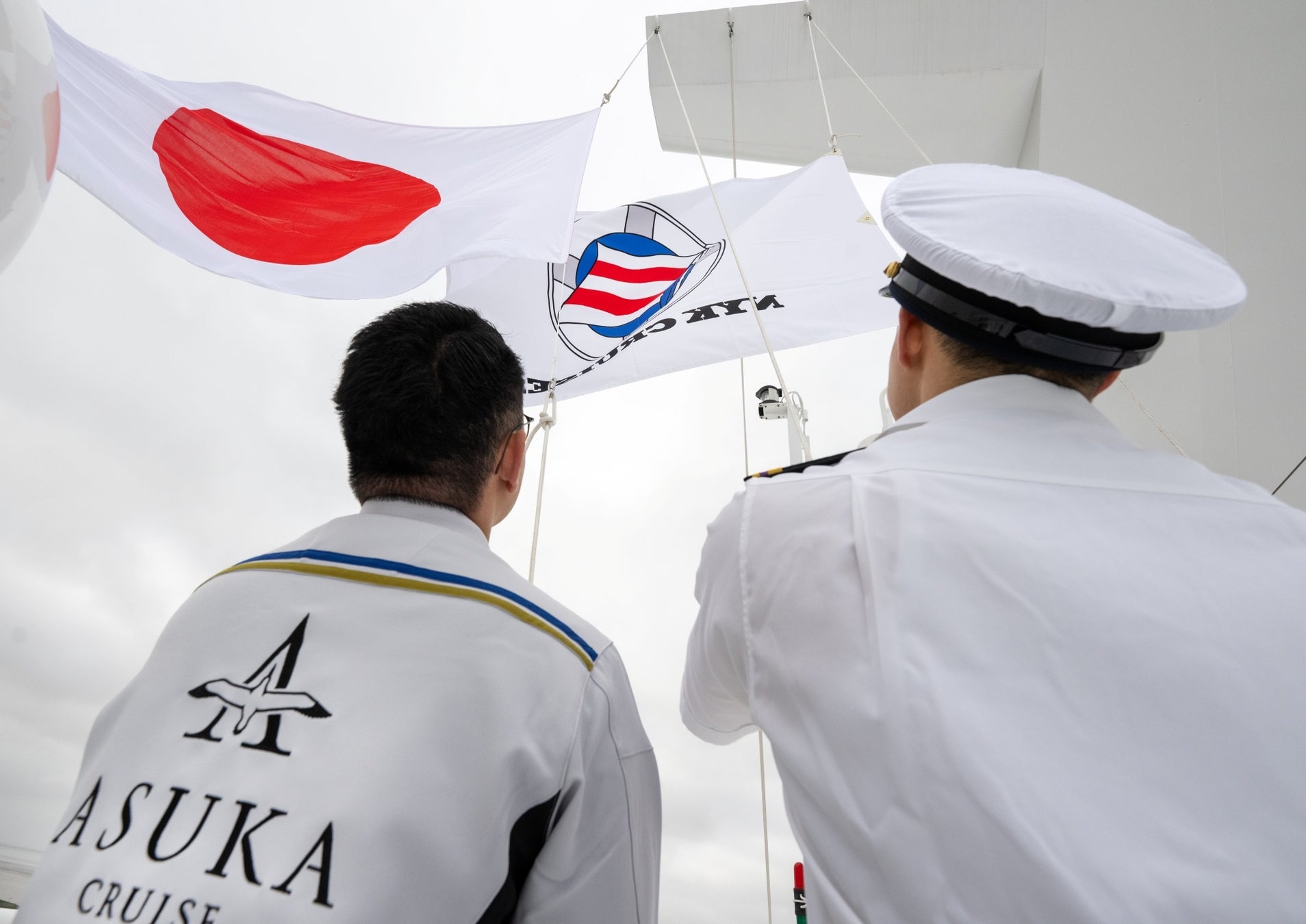 また、2023年9月に行われたスチール・カッティングセレモニーの際に、建造の安全を祈願した2つのだるまに目入れを行い、「飛鳥Ⅲ」の竣工を祝いました。調印式の後には、引き渡しの際の伝統的な儀式である、国旗交換も実施されました。