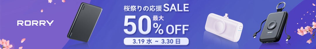 ポータブル充電製品ブランドRORRYは、楽天市場にて開催中の「桜祭りの応援SALE」に参加中です。セール期間は3月19日(水)から3月30日(日)23時59分まで、残すところあと4日間となりました。