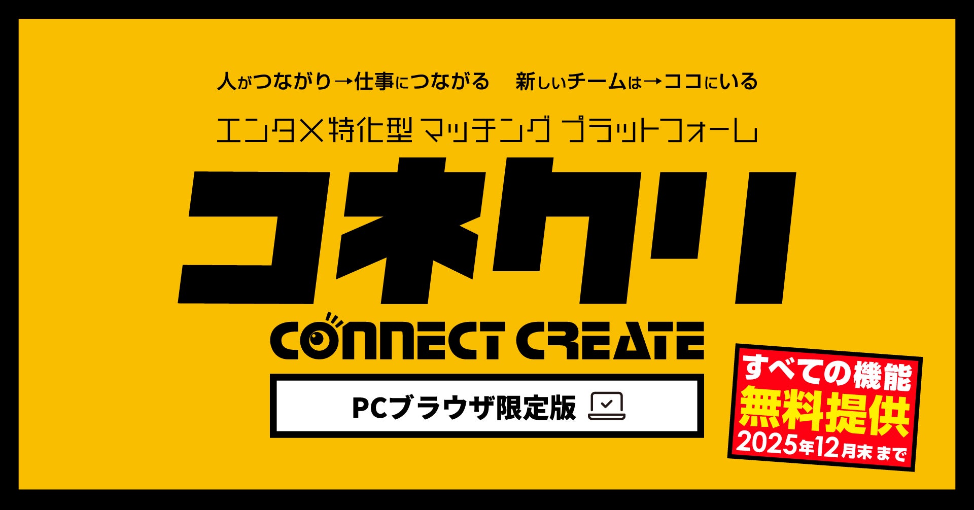 エンタメ業界特化型マッチングプラットフォーム「コネクリ」2025年6月26日ローンチ。イベントの企画・制作、ライブハウスのオペレーター、クリエイティヴまで、エンタメ業界のあらゆるニーズに対応