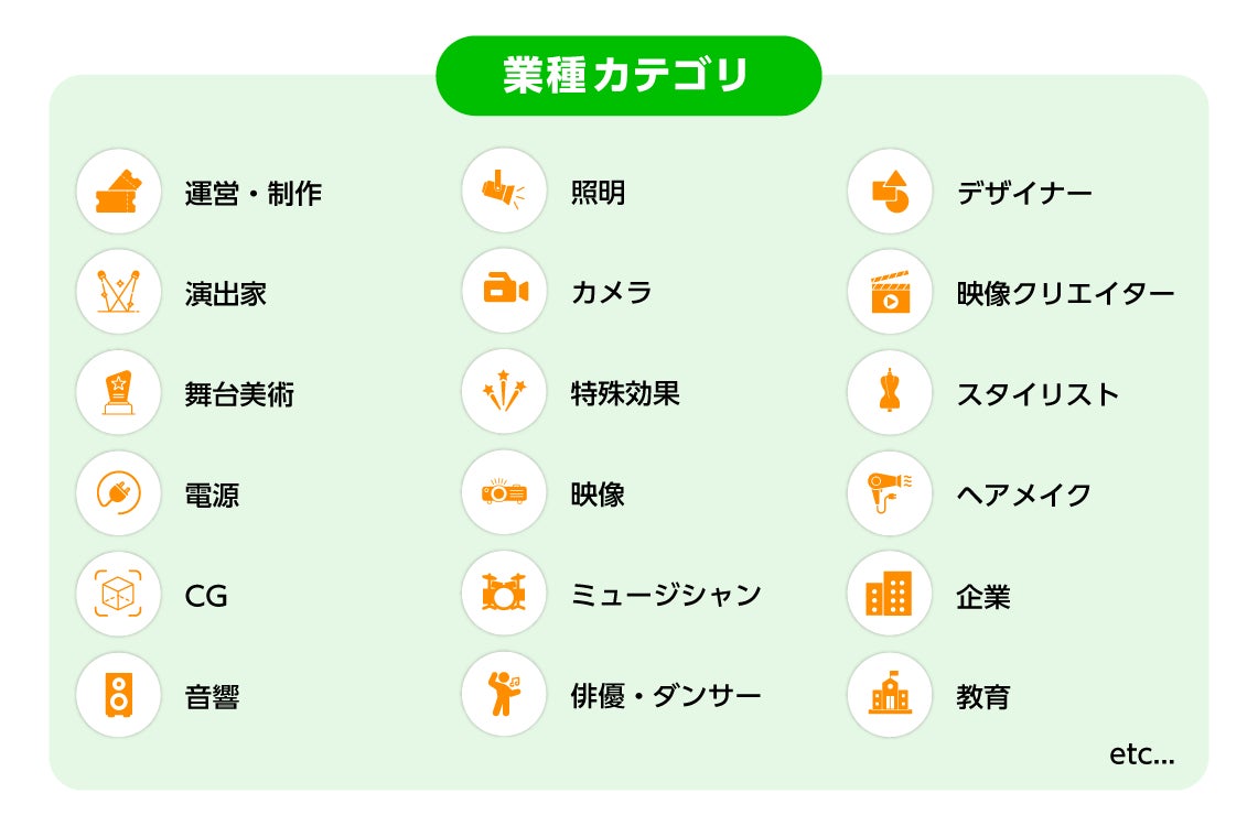 ・業種カテゴリ : 運営・制作/照明/ミュージシャン/映像クリエイター/事務所/...etc
