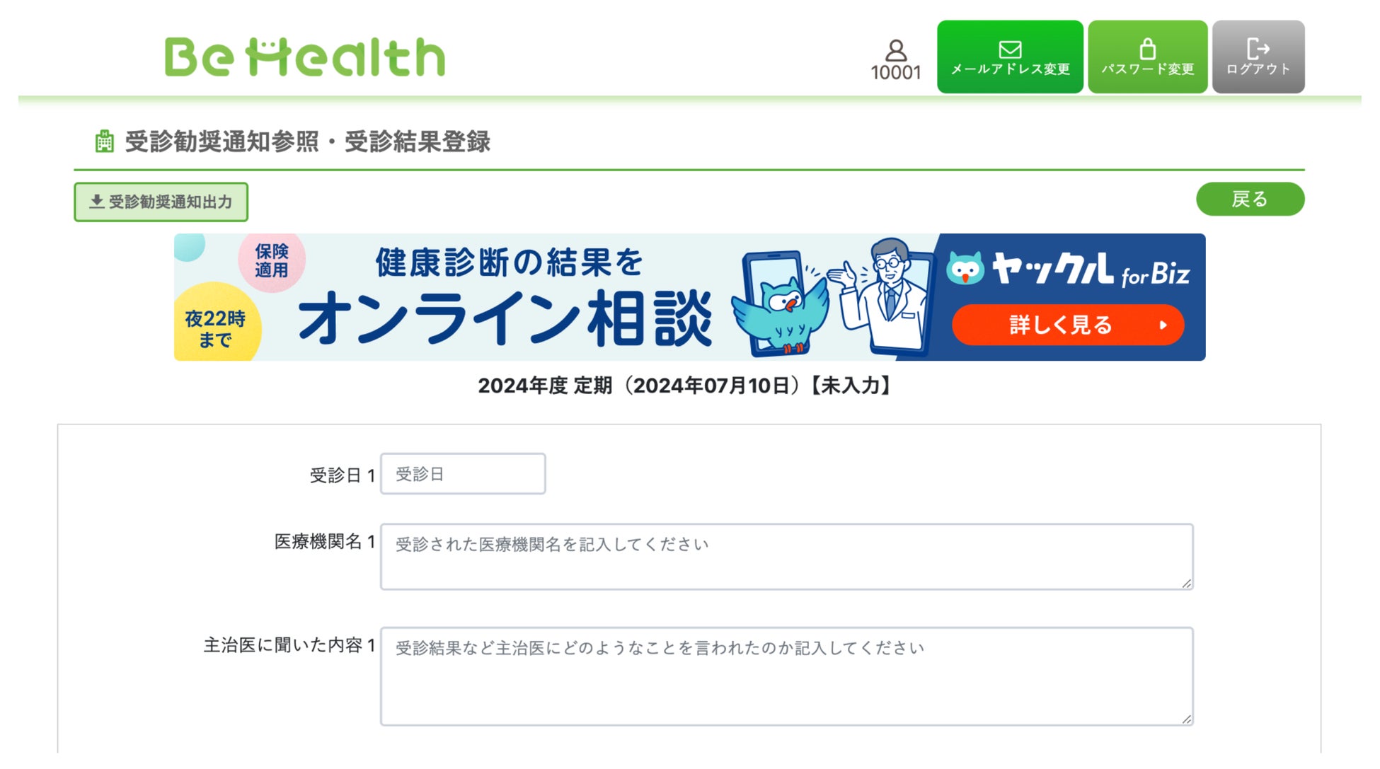 Be Healthを通じて生活習慣病の医療機関受診率を向上