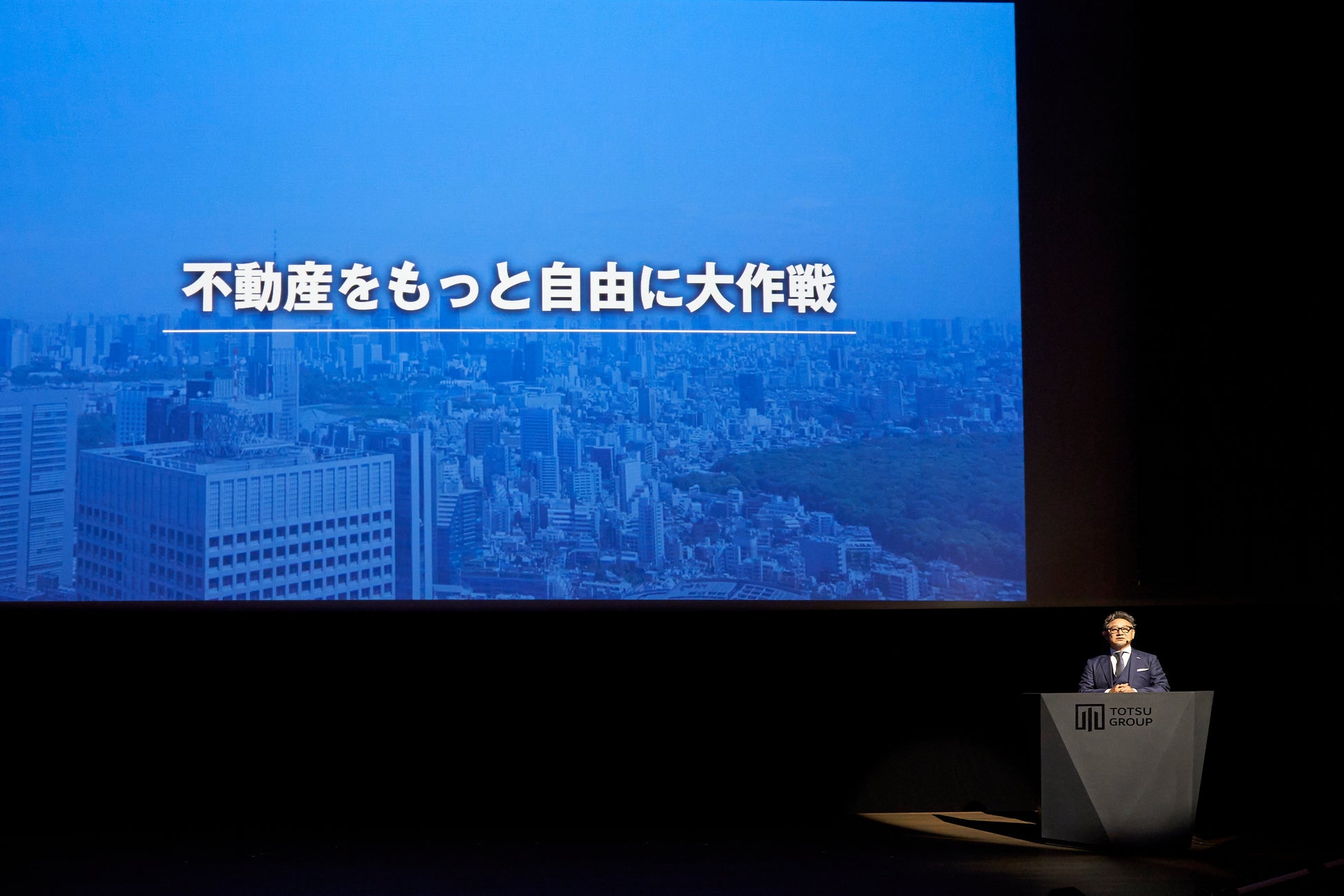 次に、東通グループ 執行役員の桜井執行役員より、2025年より始動するプロジェクト「不動産をもっと自由に大作戦」について説明いたしました。作戦その①として、「資産運用を自由に!大作戦」を発表。「東通アセットマネジメント株式会社を設立したことで、運用資産を3,000億円まで拡大する重要なファクターになると考えております。」と説明しました。作戦その②として、「不動産投資を自由に!大作戦」を発表。「不動産投資や不動産での資産形成をまだされていない初心者の方の入口にもなっていければと考えています。今後はAIを活用した手法や機能なども考えております。」と説明しました。作戦その③として、「宿泊体験を自由に!大作戦」を発表。「立地や周りの環境に応じて、コンセプトを柔軟に設計してまいります。現在、(宿泊施設の建設に)取り掛かっている場所は、芝浦になります。“ゆったり”という雰囲気を味わっていただけるようなコンセプトを考えました。外観から容易にご想像いただけるかと思いますが、画一的で機能重視のビジネスホテルとは違います。」と説明しました。作戦その④として、「賃貸をもっと自由に!大作戦」を発表。「THE TOTSUシリーズというブランドを立ち上げます。スタンダードな賃貸物件シリーズとしての意味合いを持ち、 多様化の時代に沿った物件をリリースしていこうと考えています。」と説明しました。作戦その⑤として、「上質な暮らしを自由に!大作戦」を発表。「コンセプトとしましては、東京一等地で上質な暮らし、賃貸という選択の高級レジデンスとなります。