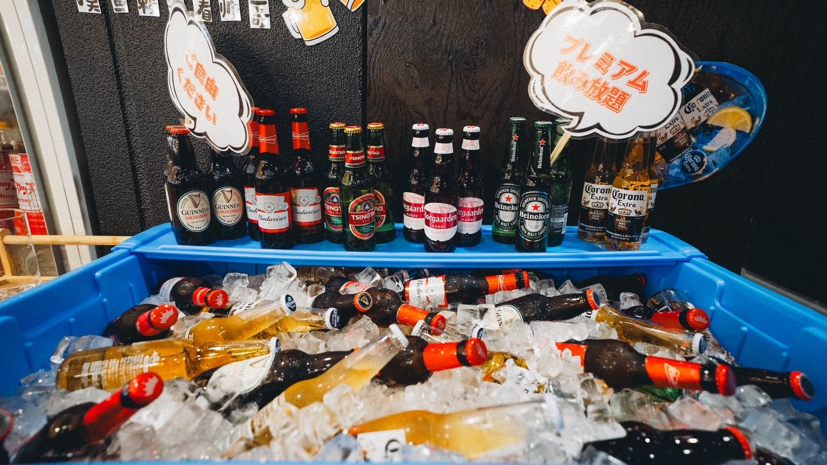✓全コース、+500円でプレミアム飲み放題に変更可。世界のビールも飲み放題!