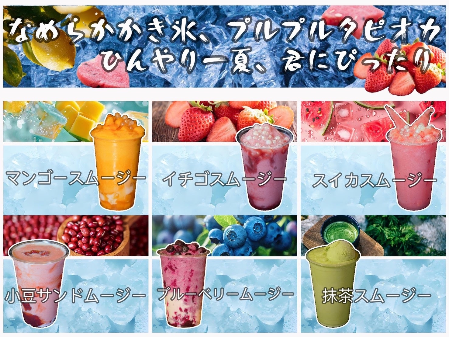SNS映えも抜群!ひんやりタピオカスムージーなど、多様なドリンクをご用意♪