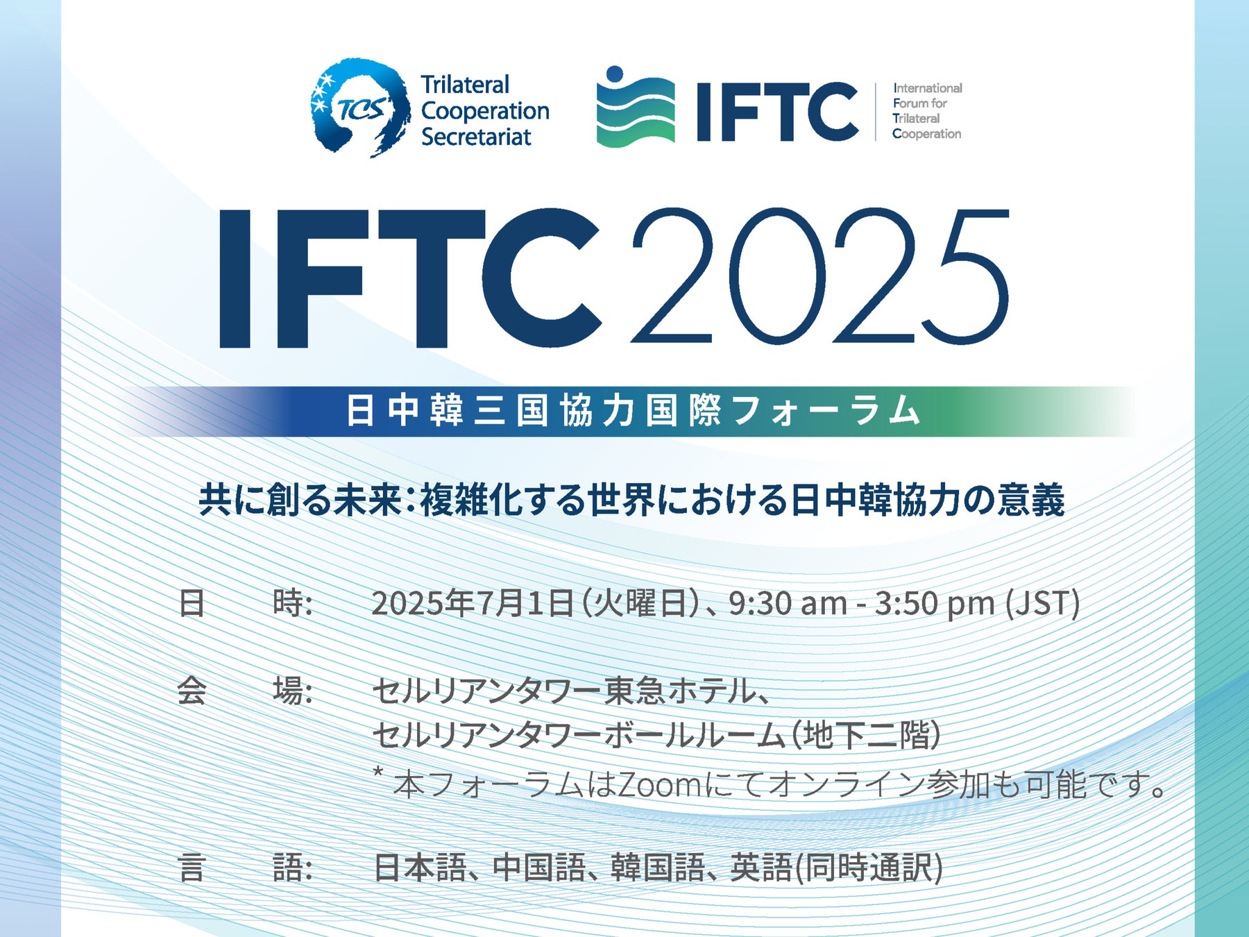「日中韓三国協力国際フォーラム(IFTC)2025」7月1日東京にて開催決定 ~共に創る未来:複雑化する世界における日中韓協力の意義~