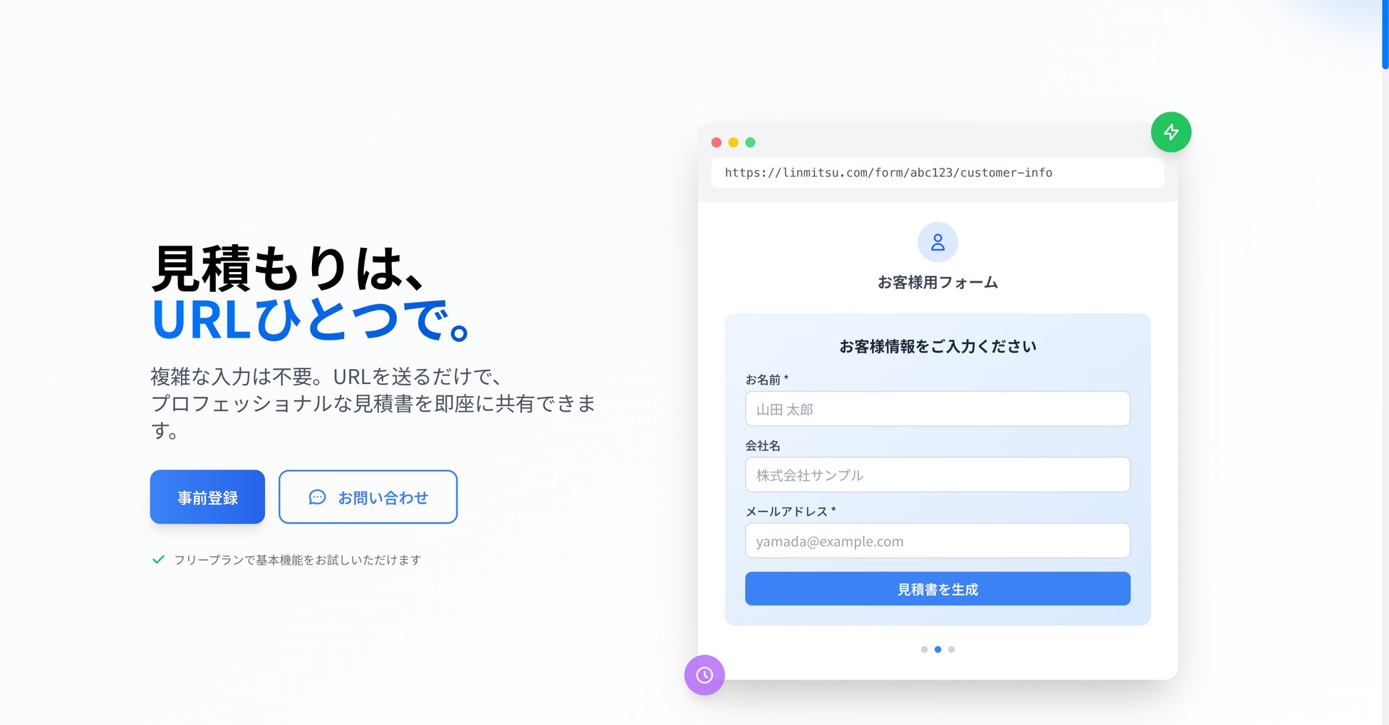 最速10秒で見積書を発行できる クラウド見積 SaaS 「リンミツ」を提供します。