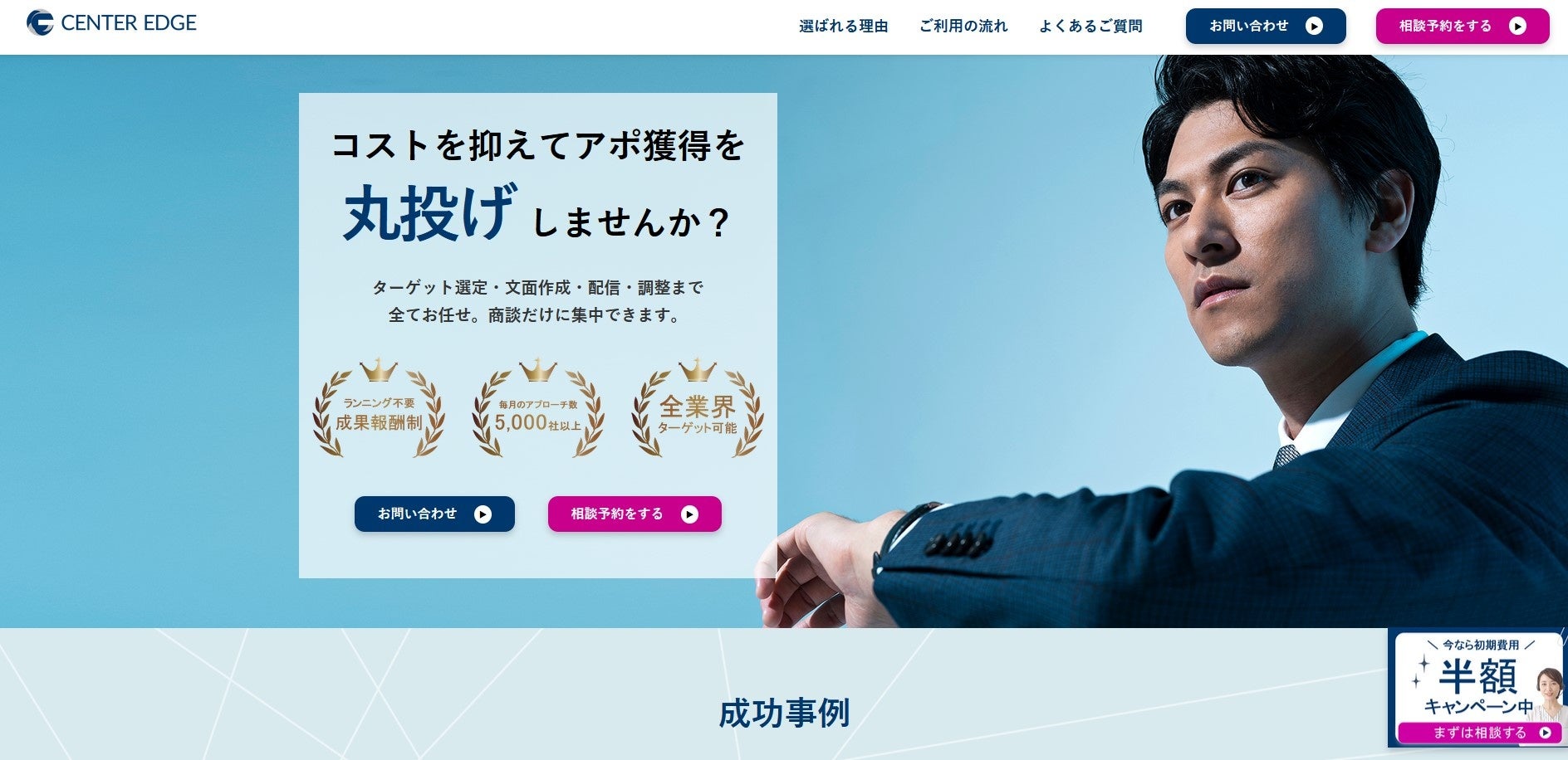 アポ獲得を“丸投げ”で実現。センターエッジ合同会社が成果報酬型の営業代行サービスを開始 〜初期費用半額キャンペーン実施中〜